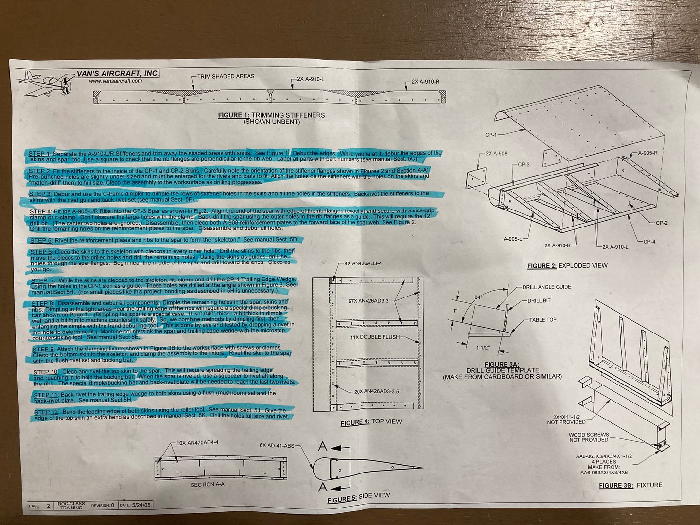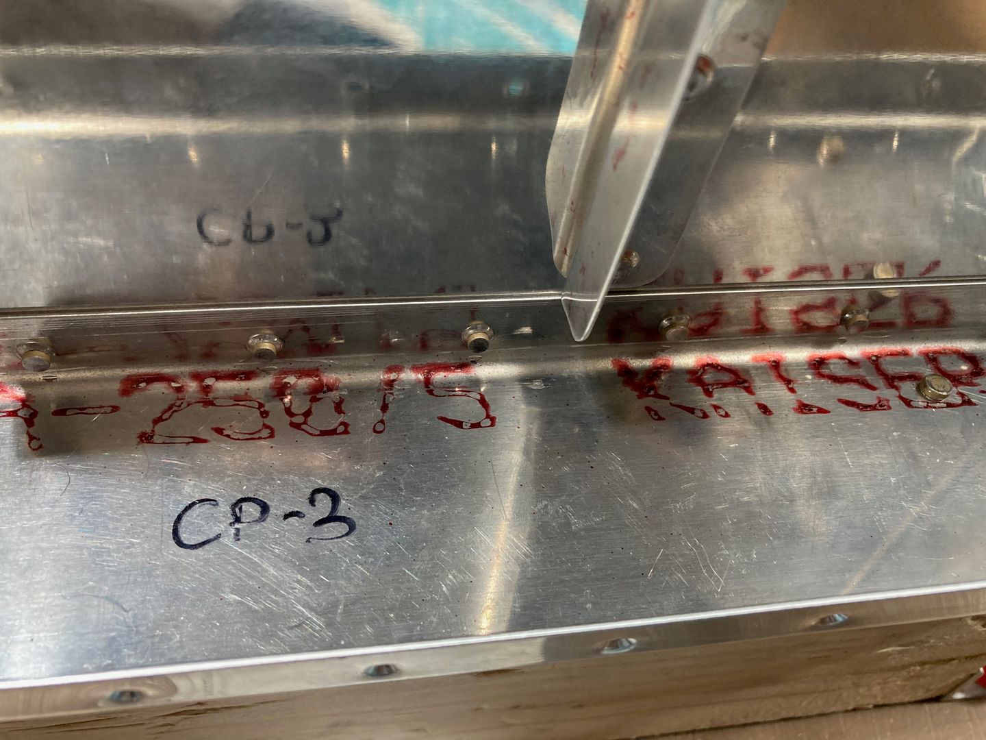 This was also the moment of my biggest blunder in this project. Just 5 minutes to the end. After I drilled the holes, I realized that I used #40 drill instead of #30. I started re-drilling the holes, but the drill bit was grabbing because the size difference between #40 and #30 is relatively small (also, I used an electric drill since it was relatively late). It is embarrassing to admit, but somehow I got this brilliant idea that a finger is a good stop for a drill bit. Well, it sort of is. But I don't recommend it -- too much blood everywhere. And of course, it got inside the leading edge where it is hard to remove it... oh well, I'll keep it there as a reminder. The good thing is it is just a #30 hole in the fingertip.