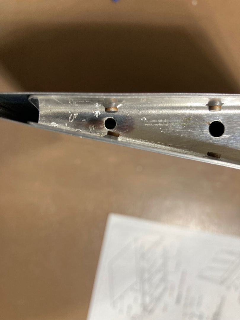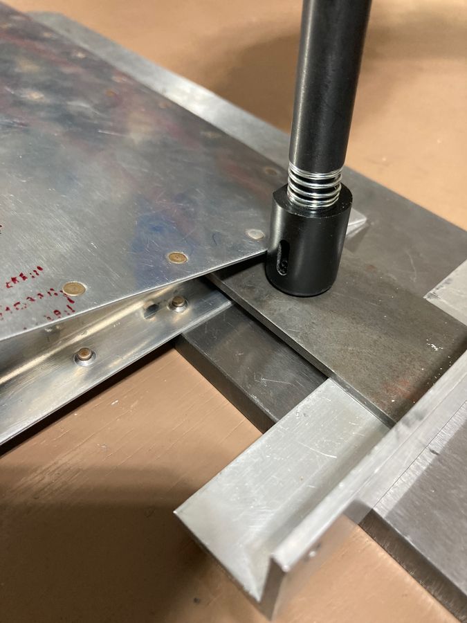 I noticed, though, that after assembling most of the control surface with rivets, the trailing wedge did not fit exactly as it did when I assembled it with clecos -- maybe, due to the dimples being slightly offset because of the elongated holes?