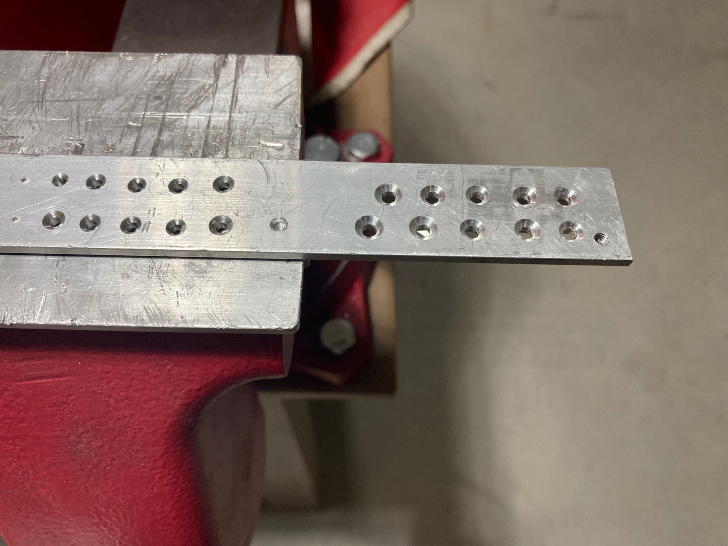 So I readjusted the tool for flush setting, now on a real part (scary!), then added 7 clicks. Drilling the part did not present any drama, other than a few holes being undercut due to metal chips getting under the cage (so the lesson I learned is to remove chips after each hole).