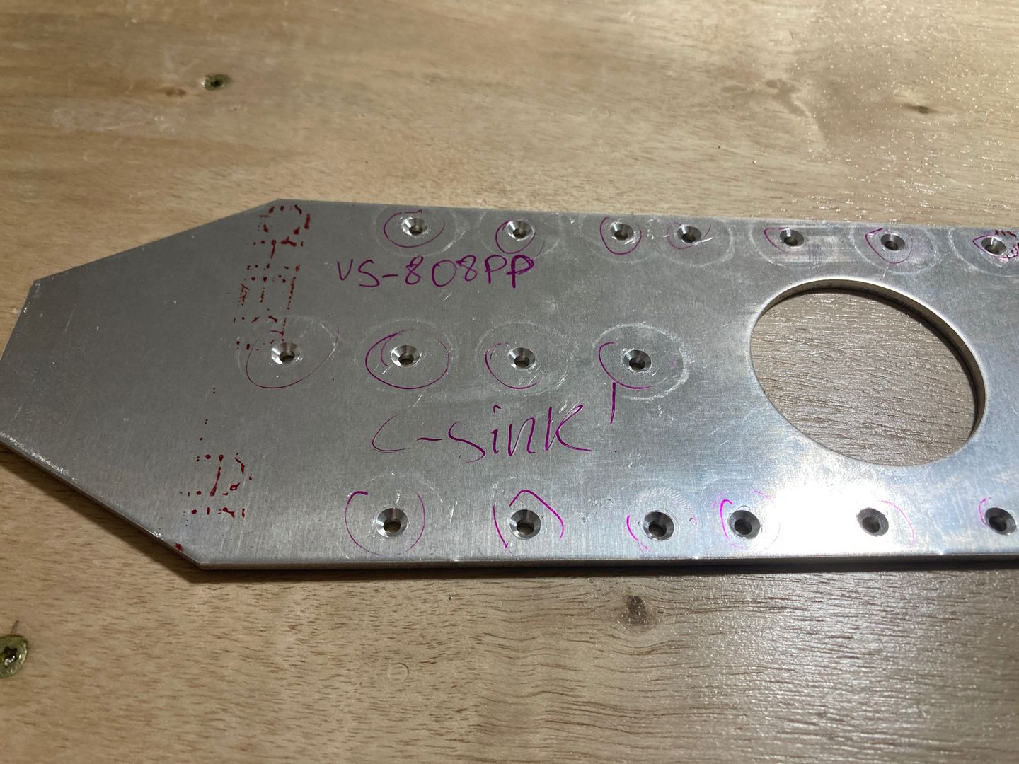 Since doubler (VS-808PP) goes behind the spar (VS-803PP), doubler needs to be countersinked with an additional 7 thou (0.007", seven clicks on the Micro-stop cage). However, having mixed experience with Micro-stop in the past (consistency still seems to be a bit of a challenge), I set up the cage for flush rivet (without extra 7 clicks). Good thing I did that! It was giving consistent flush results on an angle, but when I tried it on a real part, it was about 3 or 4 thou deeper!