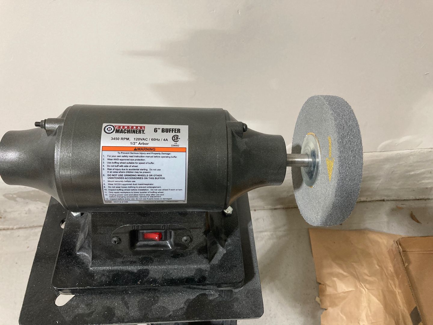 I have a harder wheel, too, but I removed it to reduce the vibration: my buffer vibrates A LOT. I have it on a Harbor Freight grinder pedestal, but this pedestal is not attached to anything. I don't want to drill into the concrete since I live in rental apartments. Maybe, I'll put it on a sheet of heavy plywood? Or make plywood big enough so I can stand on it? I want to keep the buffer far enough from assembly tables so it does not contaminate everything with aluminum dust.