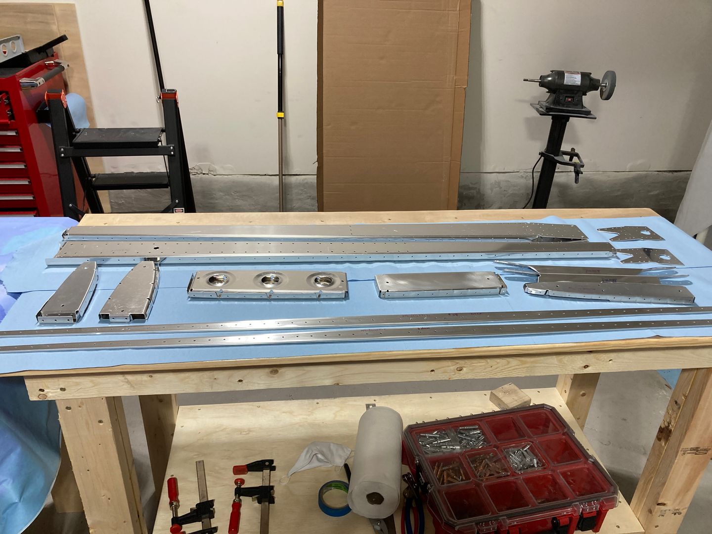 Today I finished deburring the skins with my Aircat die grinder. I used roloc attachment and blue Scotch-Brite discs ("very fine"). This tool is an air hog! The compressor I have gives 5.3 CFM at 90 psi, and it wasn't anywhere what the tool wanted (I saw some numbers saying it needs 7.8 CFM at 90 PSI).