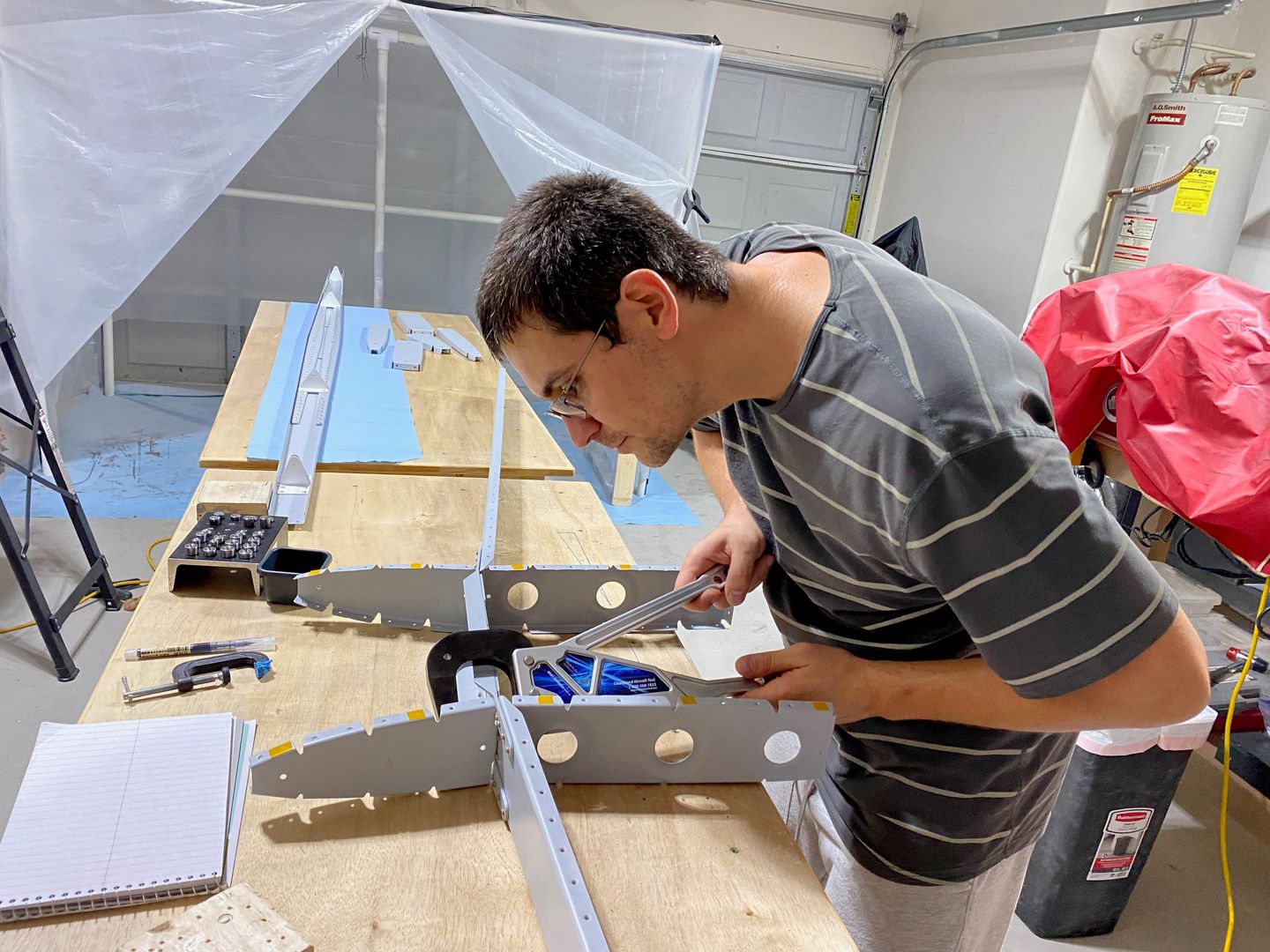 Here is me posing how I squeeze some rivets which were impossible to reach with my pneumatic squeezer:
