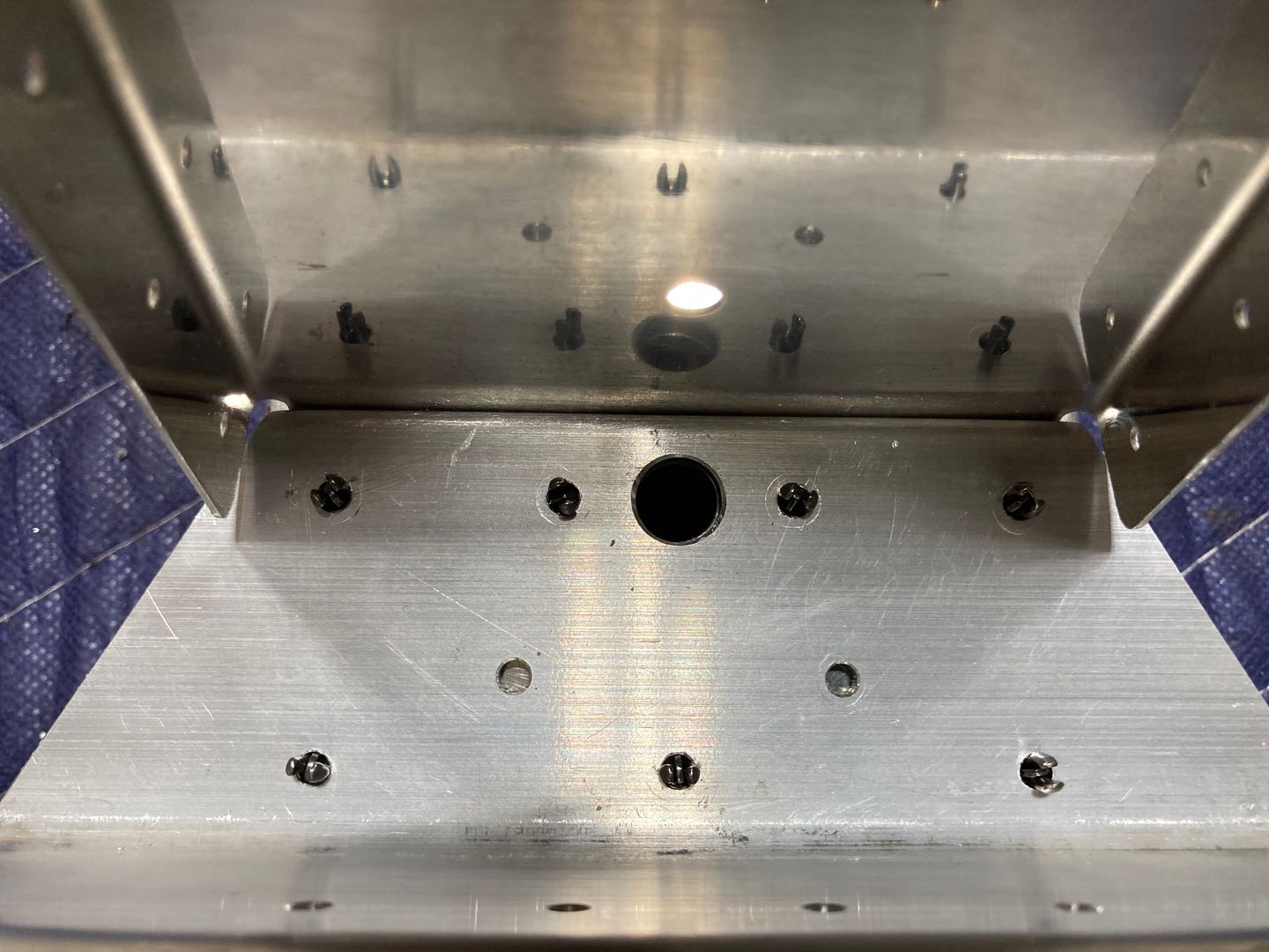 The first step was to upsize the hole in the bottom rib flange for the bolt. Looks awkward, but it is as per the plans.