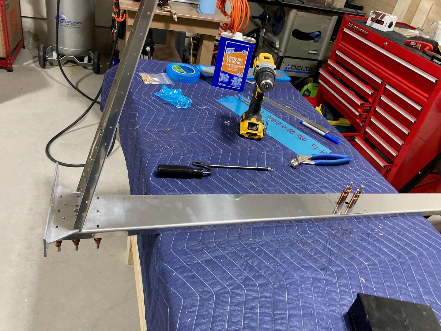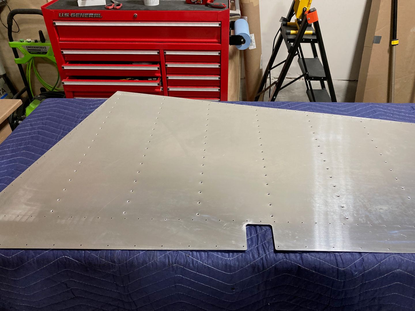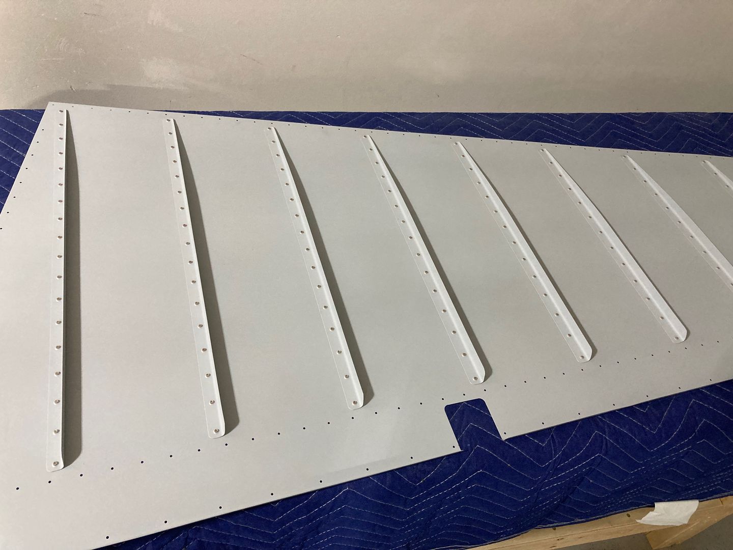 Then, with the help of my apprentices, I back riveted stiffeners to the skins.