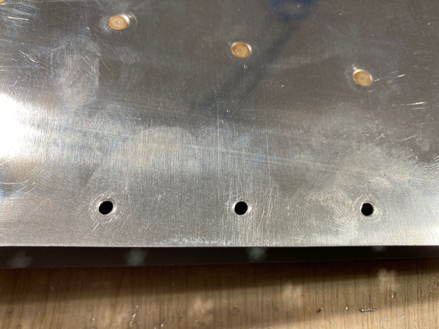 Another option is to use "oops" rivets, but I don't think I want the whole row of these: their heads are much smaller than the normal-sized rivets. Also, nothing is dimpled yet and dimpling for the "oops" rivet with the hole being upsized to #30 might be tricky.