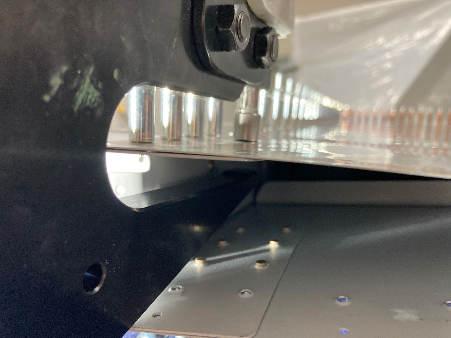 Installing the rudder horn brace was interesting. I believe you can use blind rivets for the whole part (LP4-3 for the AN470AD4 rivets and CS4-4 for the AN426AD3), however, as it turns out, the whole in the brace is located very strategically and can be used to access at least AN470AD4 rivets.