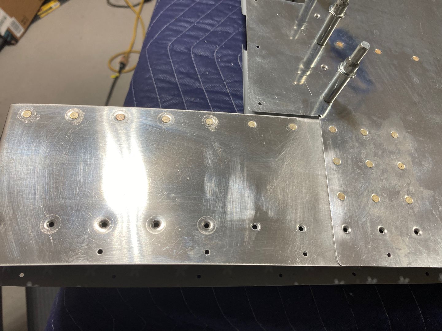 There was nothing special about the dimpling except that a few holes with very little space required a different technique. For -3 rivets I have a dimpling bucking bar I had a lot of success using. However, I did not have it for the -4 rivets, so I decided to try close quarters dimpling dies.