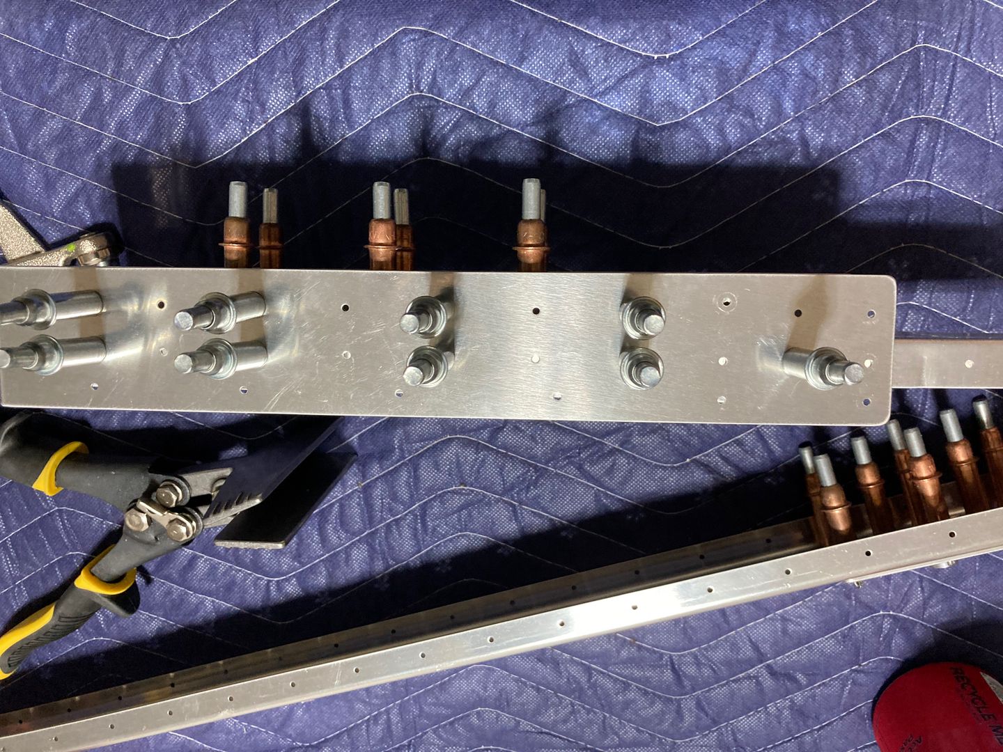 The idea of drilling #40 first was that if I won't get proper edge distance on the rib flanges, I would repair the lead somehow (maybe, pour lead back into the holes) and re-drill it. I used the #40 drill bit to mark the holes on the rib flanges through the holes on the counterweight, and they turned out to be fine. One hole looked just a little bit too close to the web of the rib, but I figured that nut will fit and I can sand a washer a bit to make it fit there.