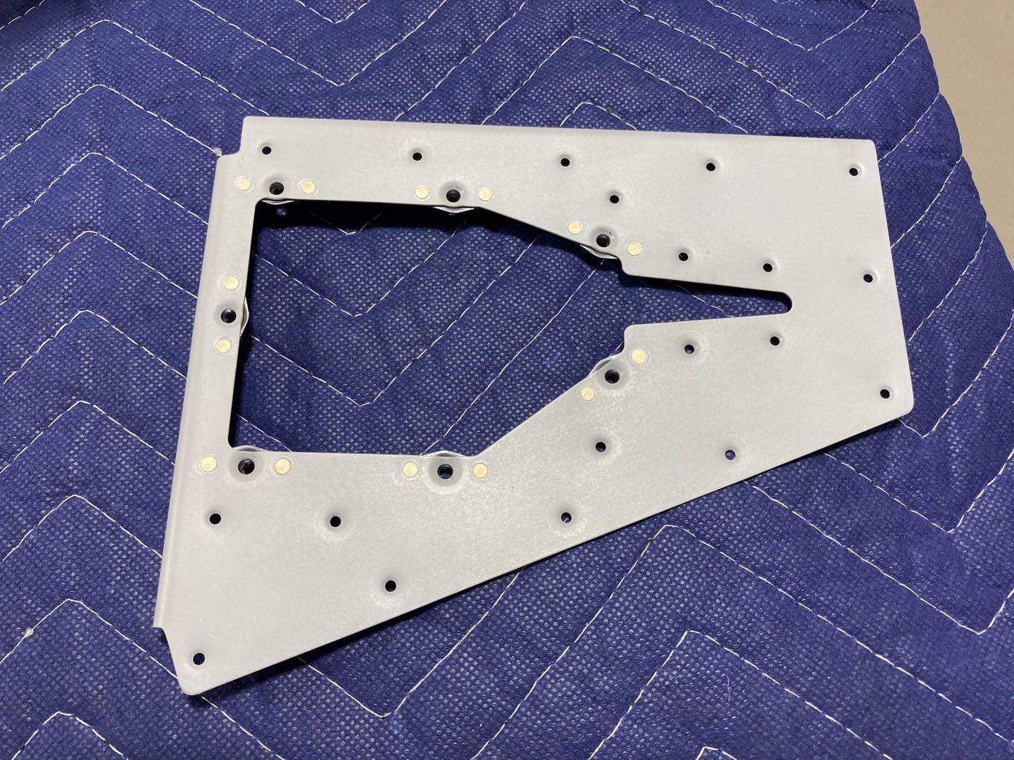 The first thing I did was to dimple the trim access reinforcement plate and counter-sink the holes for the nut plates. Instead of dimpling the part and the nut plates, I went with the NAS1097 (also known as "oops" rivets). They have a smaller head than the "regular" AN426 rivets, which allows two uses.