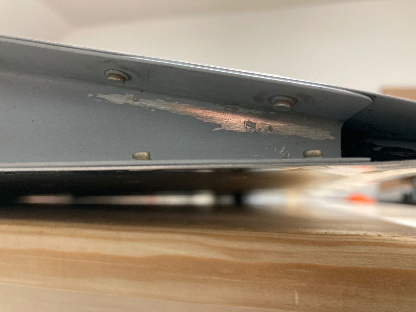 When I riveted the right elevator, I put a few scratches on the ribs with my bucking bar. I wanted to see how bad are those, so I used the denatured alcohol to clean the primer. Surprisingly, primer rubbed off. I did tests in the past, and acetone or lacquer thinner would remove primer if rubbed enough. However, I thought that it would resist the alcohol. Well, it does, but it seems like if you make a scratch first, it will easily start to remove the primer starting from the scratched area.