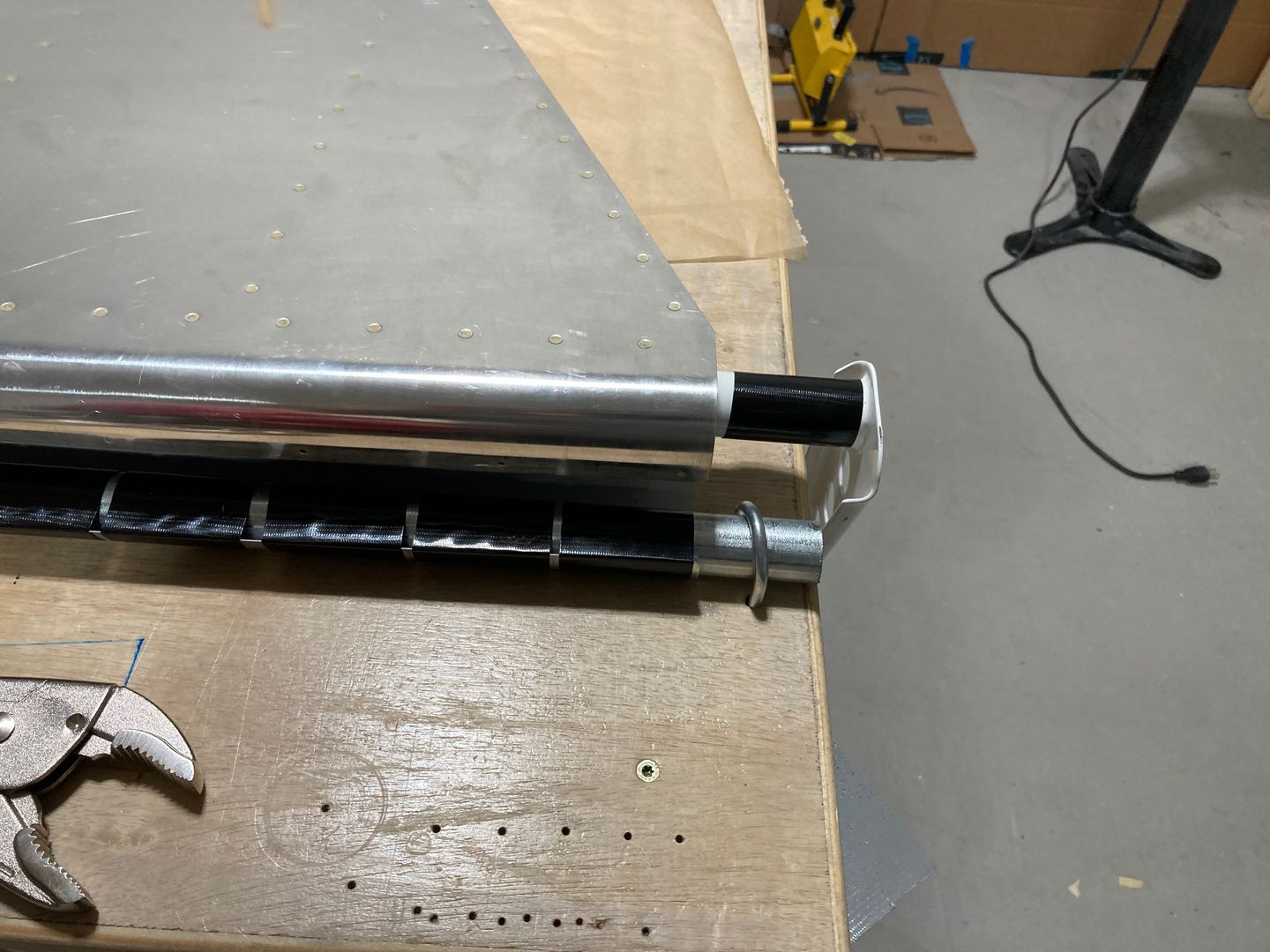 Then I spent a lot of time trying to massage the edges so they overlap relatively well. The issue seemed to be that I rolled the outermost part too much and I did not roll the innermost part enough (because the pipe got too close to the part). Not sure how to do it better next time. Maybe, use a smaller conduit closer to the spar?