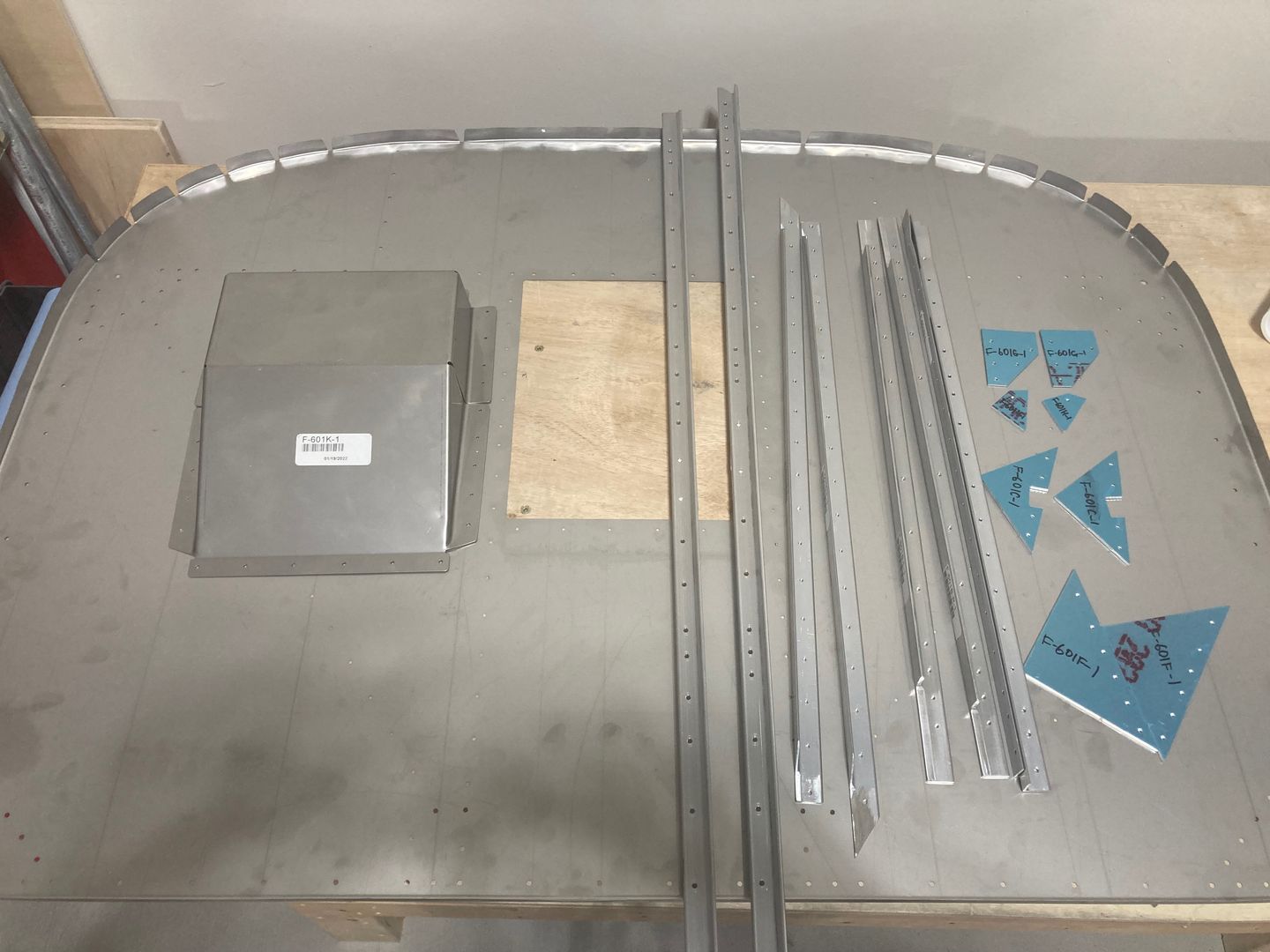 Not much to say here. I took the parts that make the firewall bulkhead, deburred, and clecoed them together.