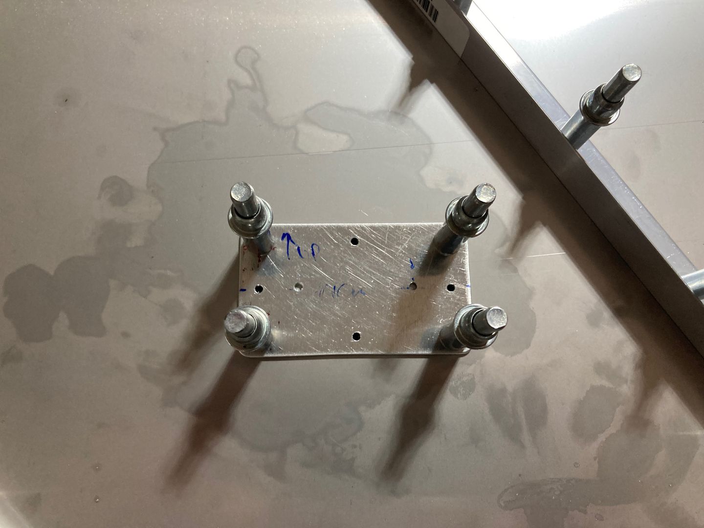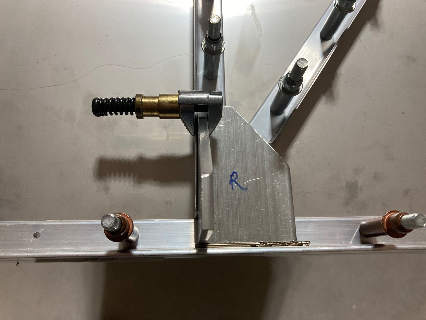 Fabricated a small part, the brake plate. I drilled two pilot holes that will be used later for drilling the holes for the brake line fittings. I figured it would be easier to drill the holes to #41 first, then upsize them to the fitting size with the unibit drill bit.