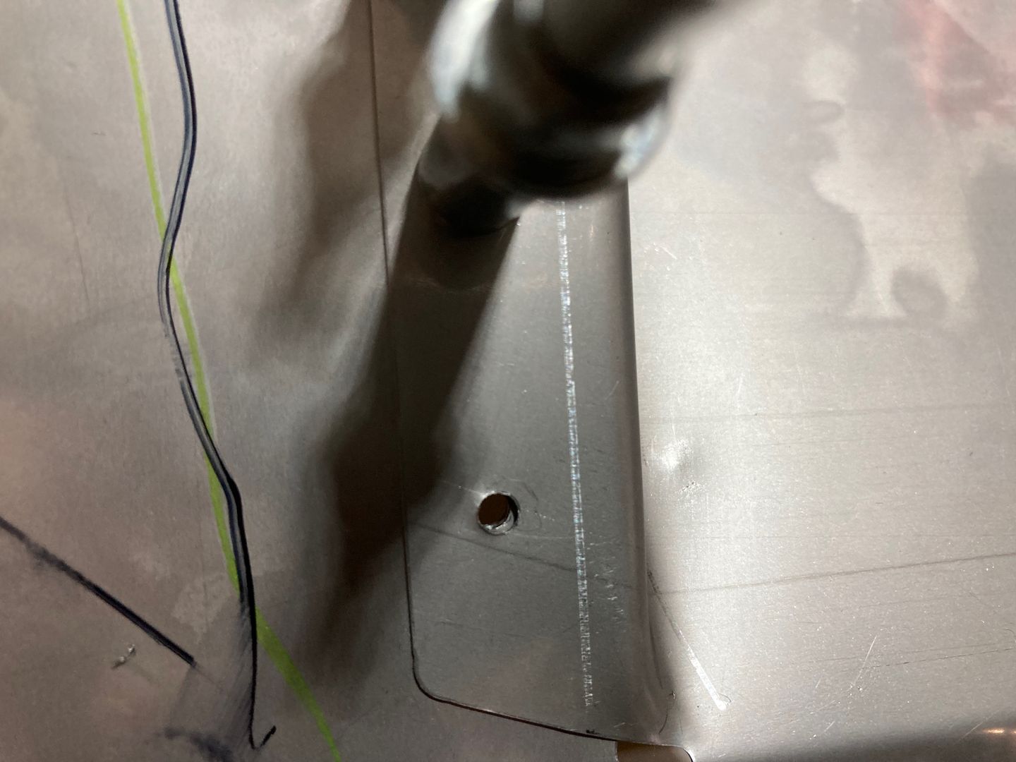The first step was to drill the stiffener I fabricated from the angle stock to the firewall.