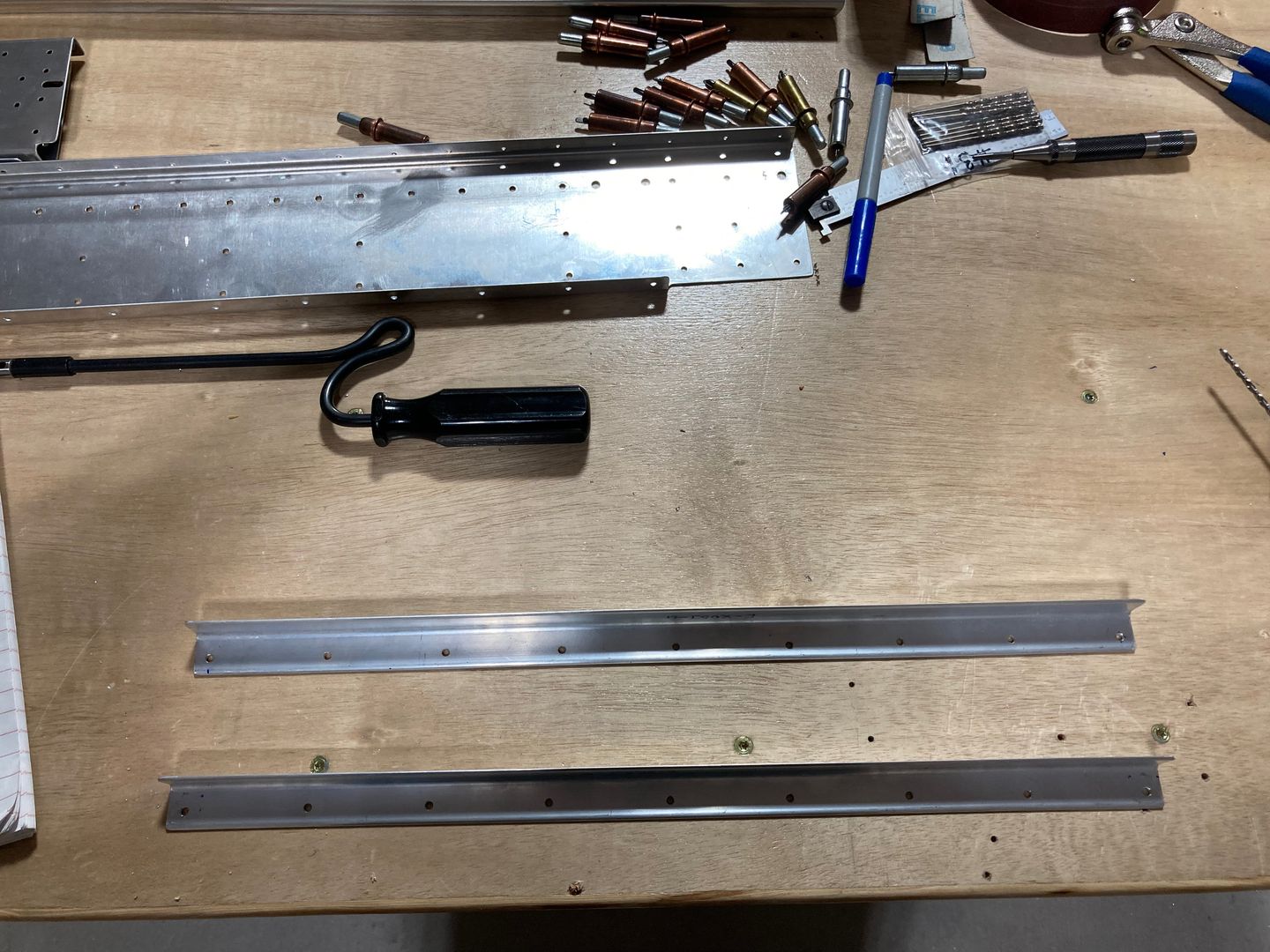 Then I moved on to drilling various other holes, drilling all four sides of the bulkhead plus doublers together, and drilling seat stop parts to the top channel.