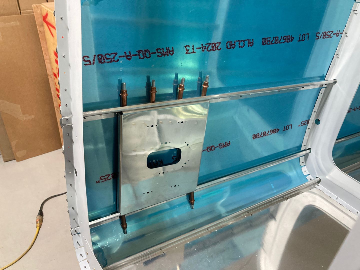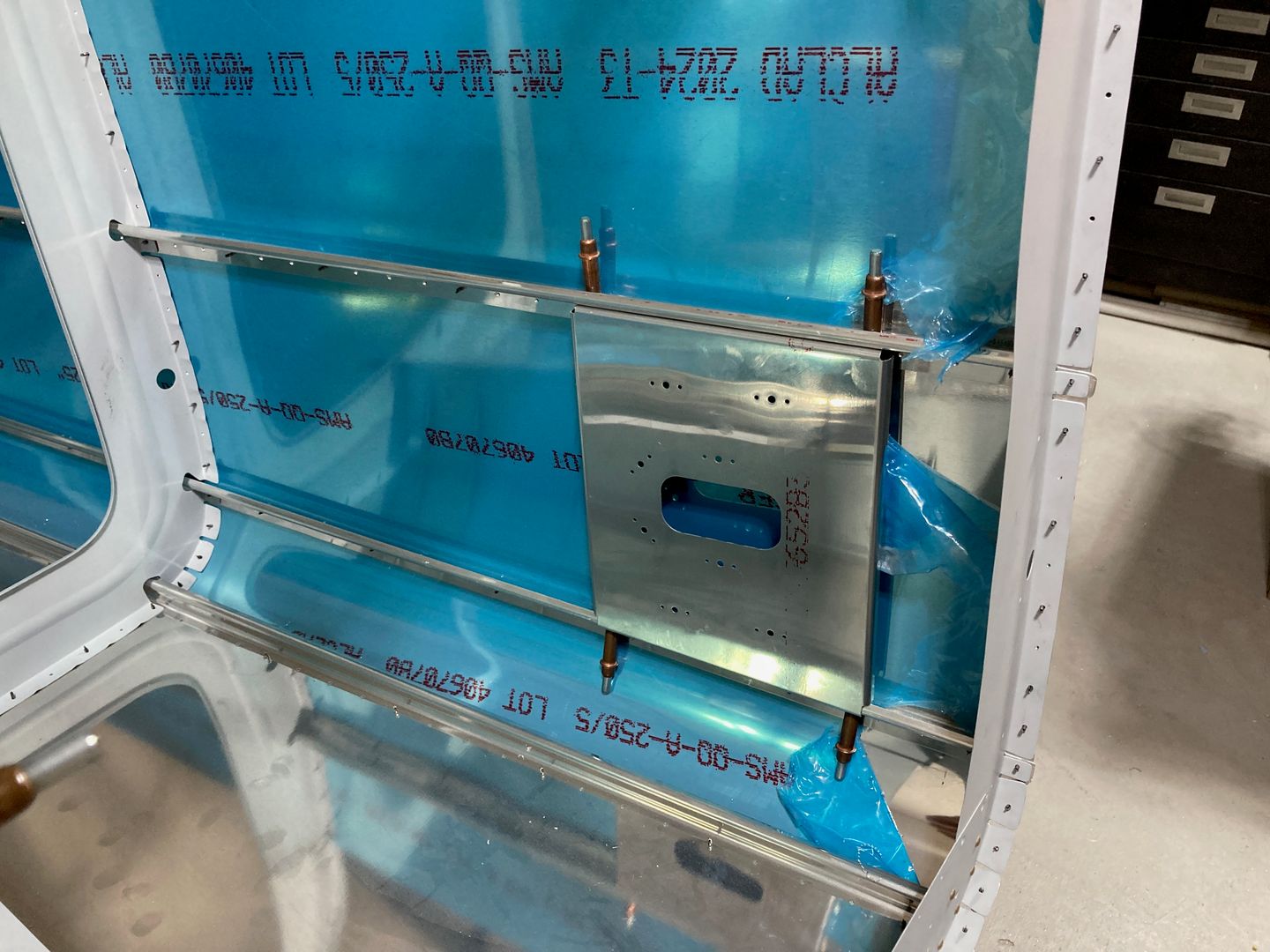 Then I pulled the J-channel out of the fuselage, attached the bracket to it using the marks to position it, and drilled using a regular drill.