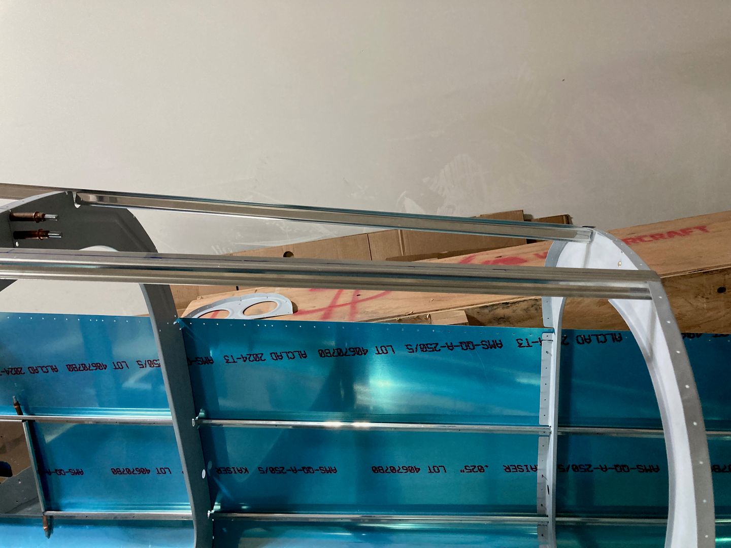 Finally, I cut the two top J-channels. I haven't cut them to the specified length yet: I want to cleco the top skins to see how long I need to cut the channels.