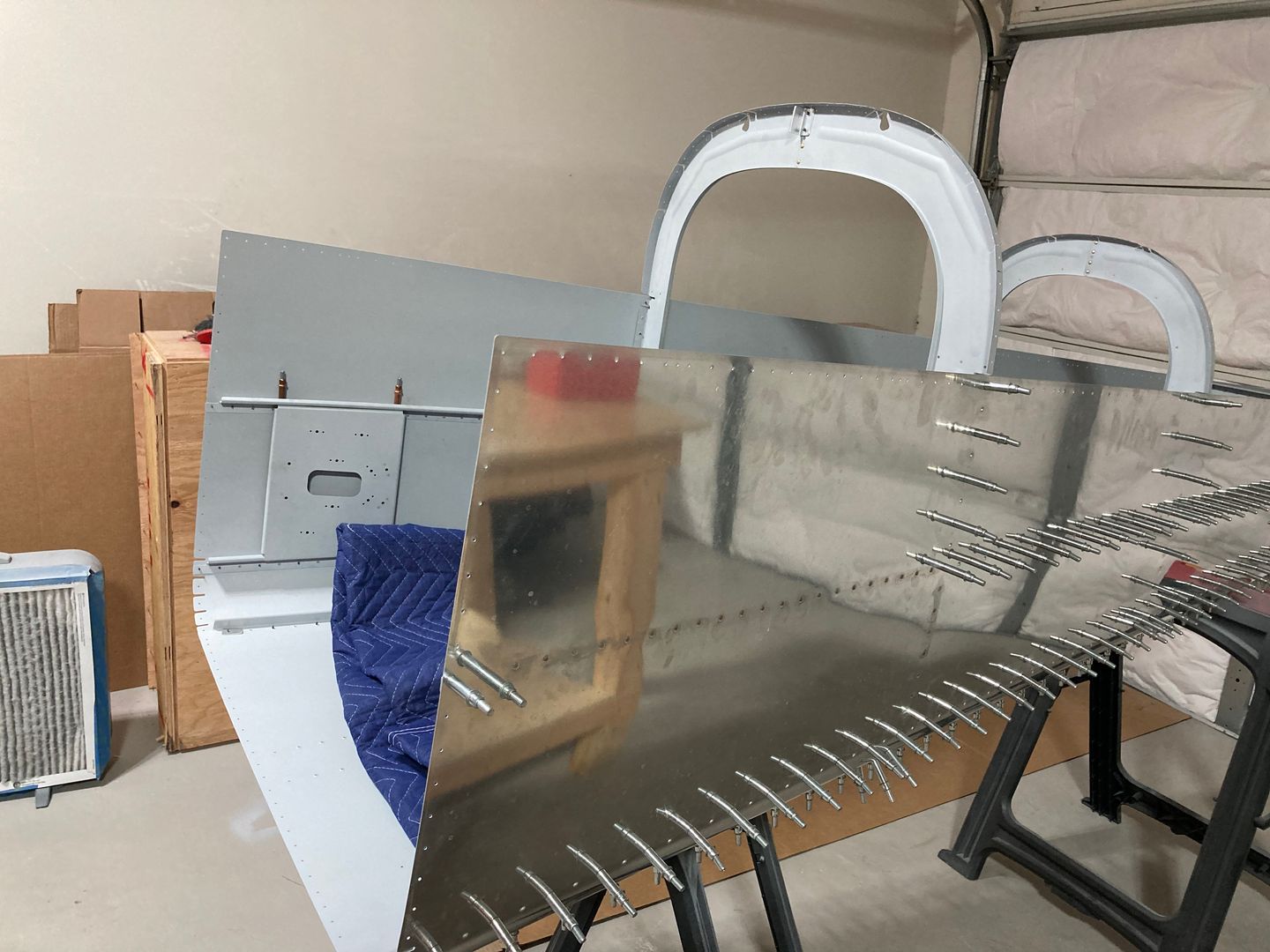 The first rivet in the aft fuselage assembly is in! Also, it is the wrong one: I was not supposed to rivet above the top J-stiffener.