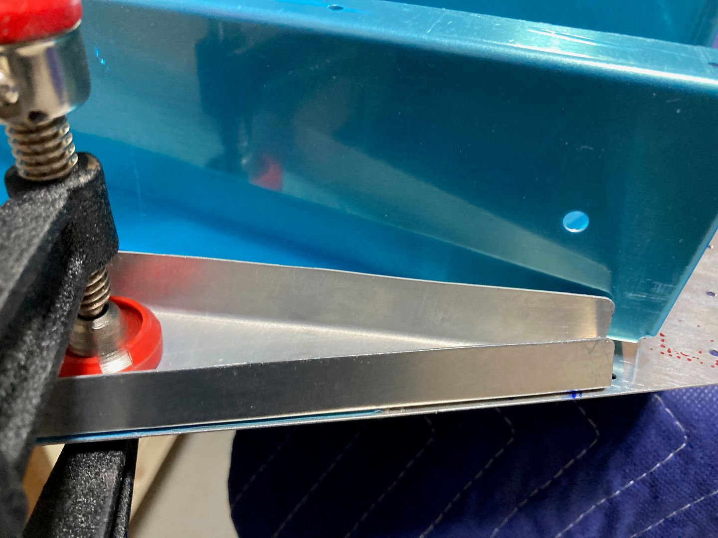 After that, I made attach straps for the ribs. I modified the forward attach strips, so they don't encroach on a neighbor rivet. I saw some folks would make the part larger to include four rivets on the rib side. However, the plans show three rivets (two to the F-623 corner ribs and one to the F-705 bulkhead), so I decided to make the part a bit narrower instead.
