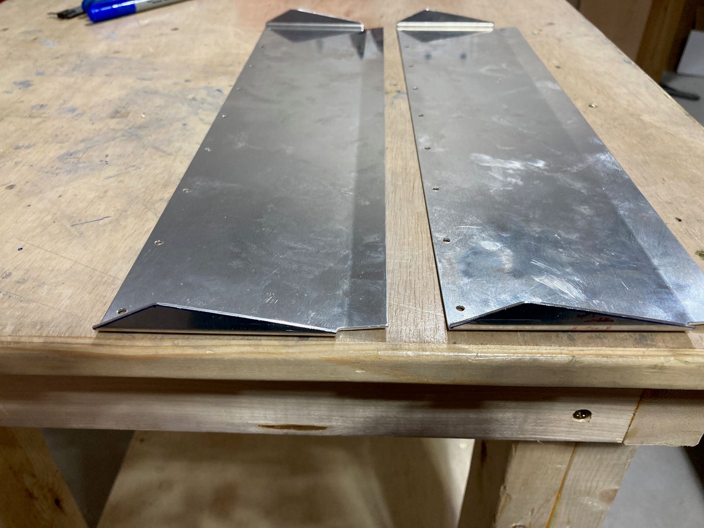 Then I cut the hinges for the seat back brace and drilled them to the brace itself. I used my rivet fan to locate the holes. I drilled directly through the fan as it works better that way.