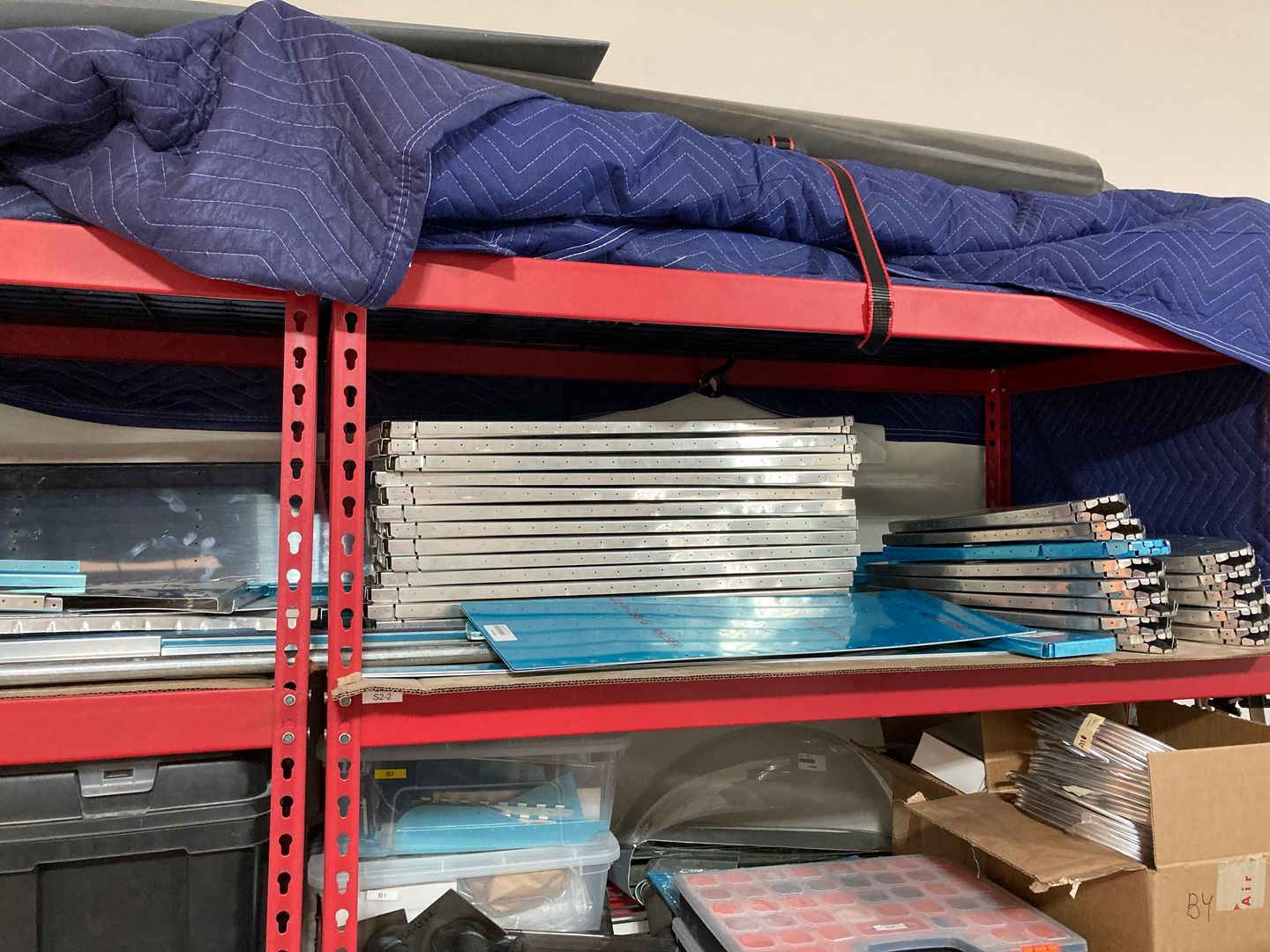 I did some unpacking, moving parts to the shelf. I still need to figure out where to store long parts, the wing spars, and the leading edge skins.