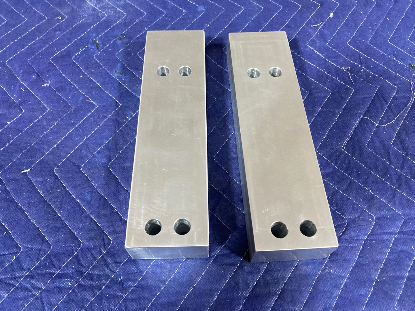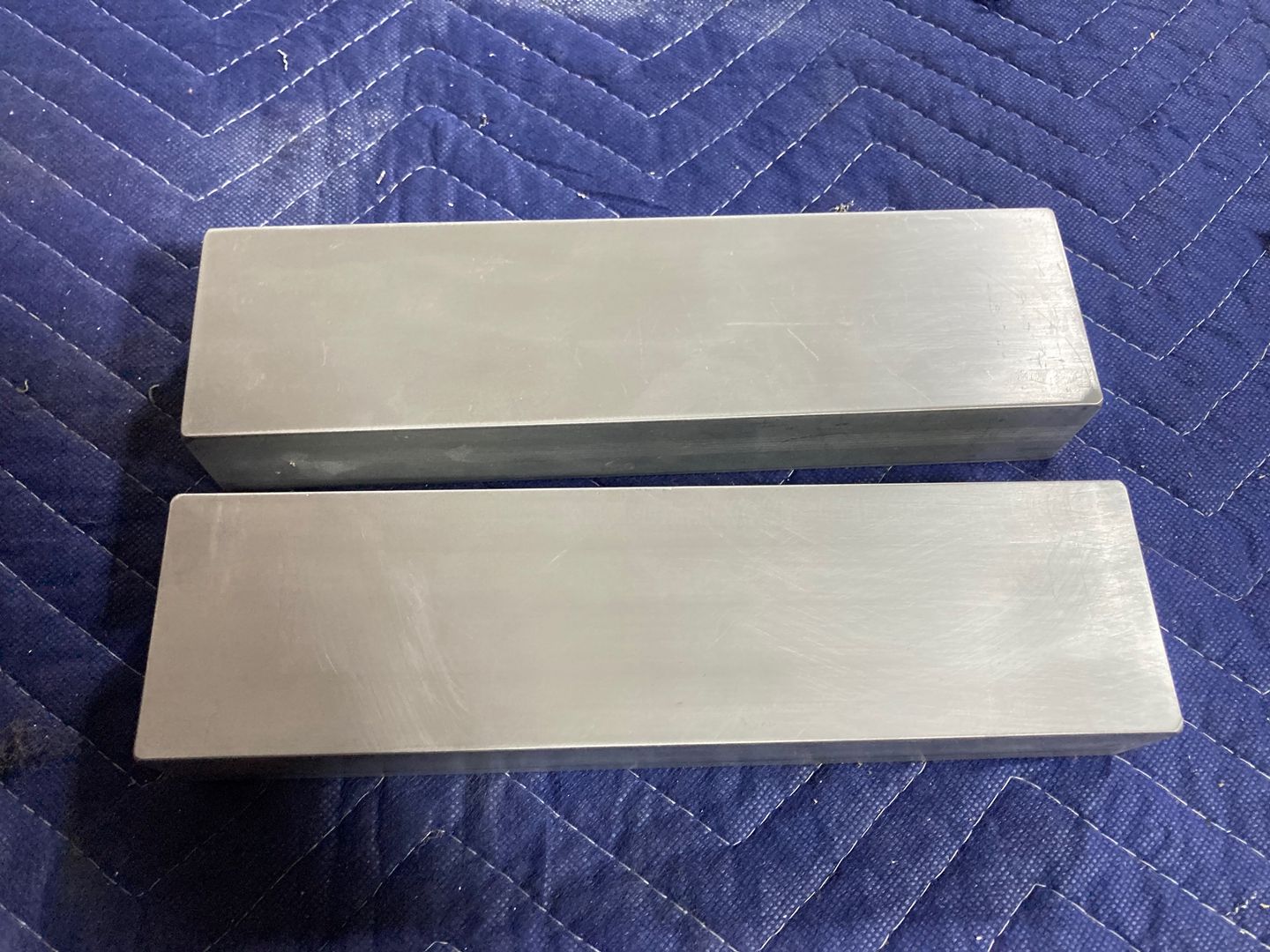 Then I switched to machining the "flat" spacers to fit at the wing spar locations. I happened to have two chunks of aluminum of a perfect size. They were 1.5" thick, slightly longer than needed, and the width allowed for two large bolts to be captured in the spacer.
