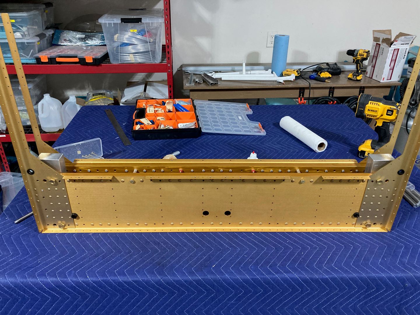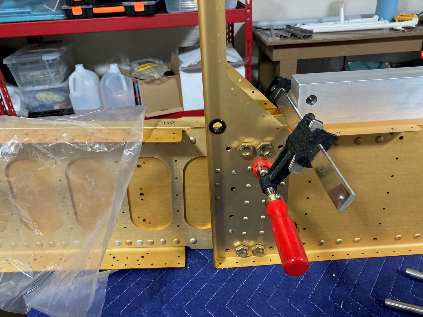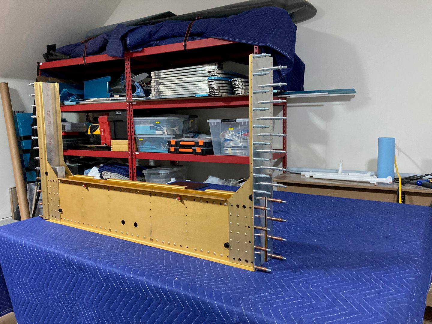 The first thing I did was to see how two halves of the center section fit together. I used four of the close tolerance bolts which I intend to replace with new ones for the final installation. They are about $7.00 each, so not a big deal.
