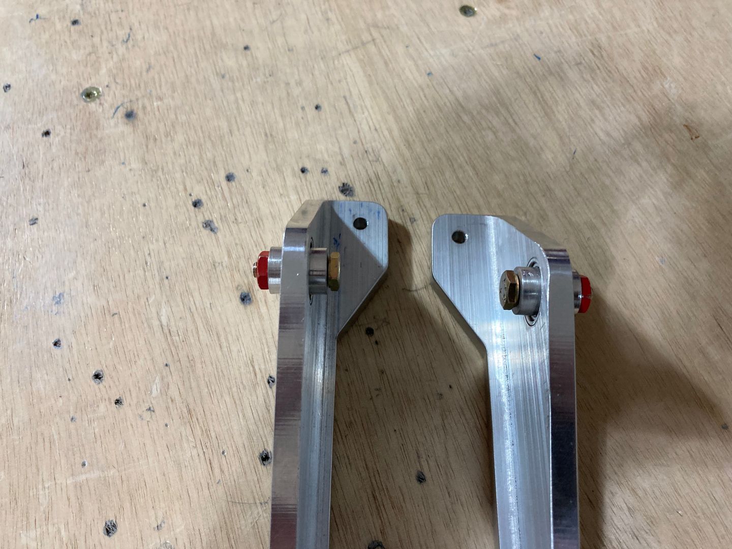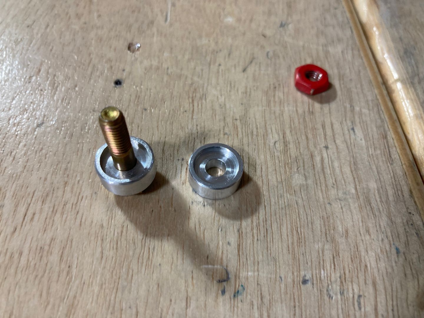 Then I turned over to priming the parts for the center section. The control column mounts have bearings pressed in them which needed to be protected from both the cleaning and the primer. I tried to use the painter's tape but did not like how well it sticks (and also, cutting it is a hassle). So instead I machined simple bushings that cover both sides and are bolted together through the bearing.