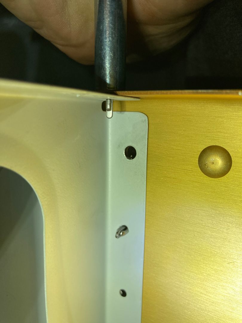 However, after I opened the hole to about 3/16", I noticed that it is not centered. It was off by maybe 1/16"? Not good. I think it happened when I lowered the drill from the top hole. I did not have a spot drill to start the second hole, so the drill bit wandered a bit. Also, I've realized that even if my holes are perfectly in the center, what's next? How am I going to drill a perfectly straight hole in the tail spring?