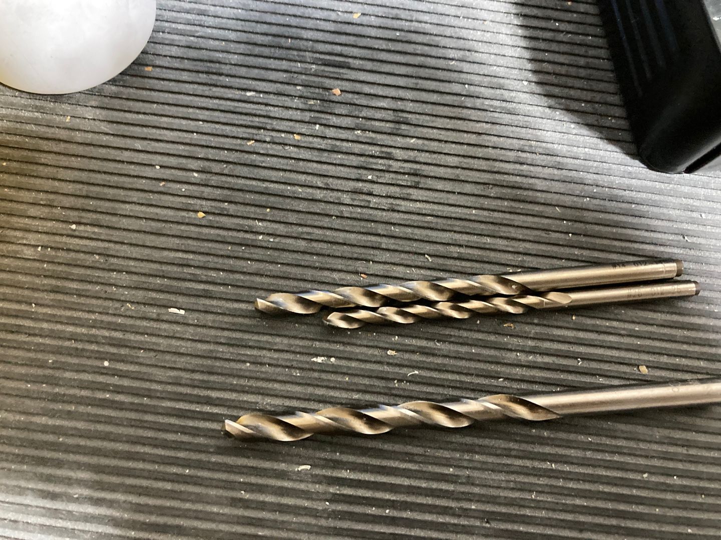 I sort of succeeded, but all three drill bits I used have broken cutting edges. I think it happened when I was exiting the hole, I still cannot figure out the proper procedure for exiting the hole when drilling steel.