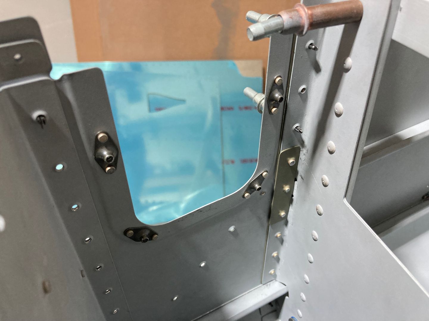 All I did was about 12 rivets, 6 rivets on each side, on the aft of the flange of the F-711 bulkhead. After placing shims under the aft flanges (0.032" on one side and 0.25" on the other side), the skin can be pulled tight to the flanges.