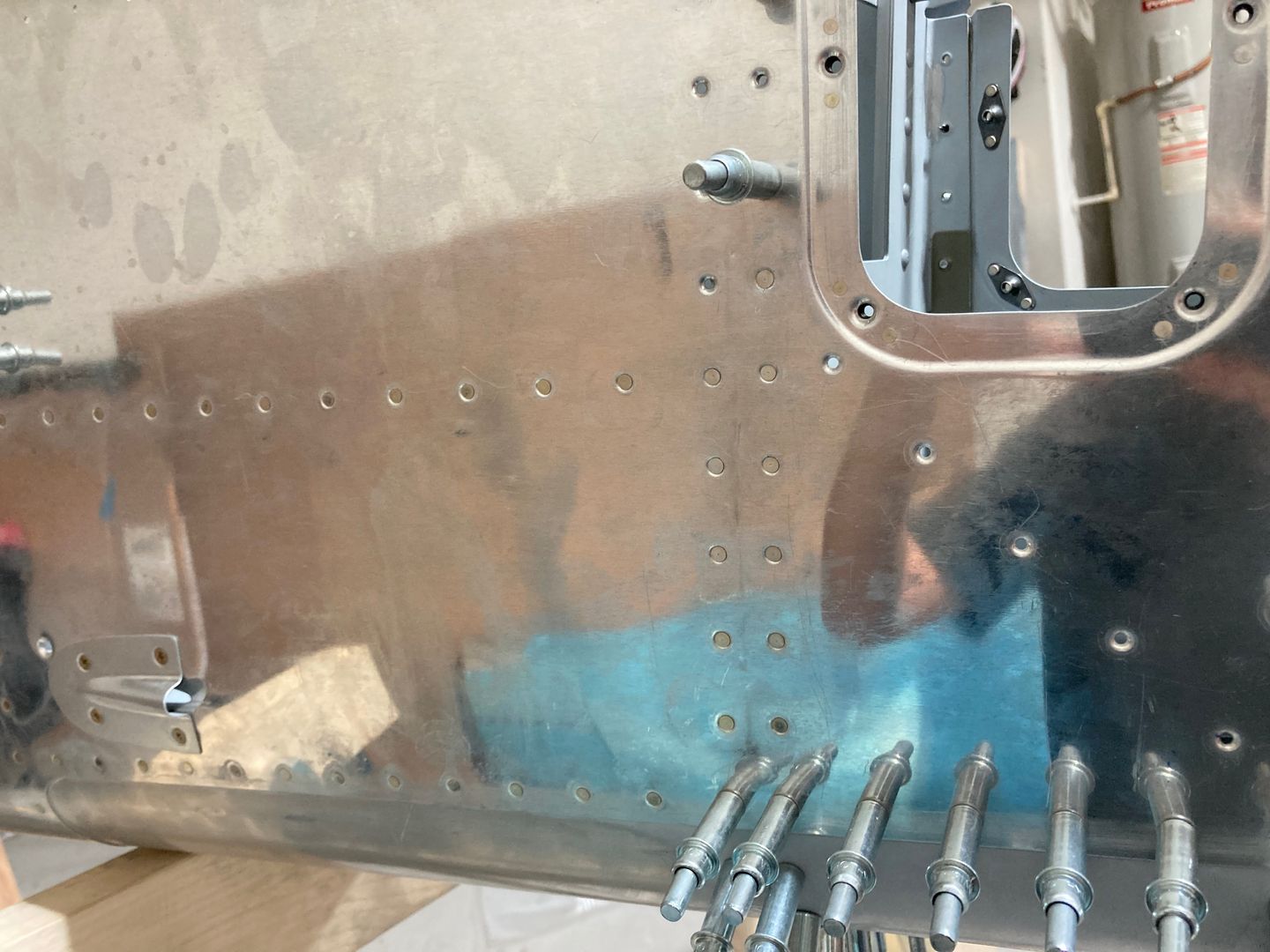 There is a slight crease / dent on the skin, but overall it looks okay. The fuselage is not fully straight if I put a ruler against it, but Van's support says it is not a structural issue. They suggested using shims, but I think I have enough of them. Won't be pretty, but will be structurally sound.