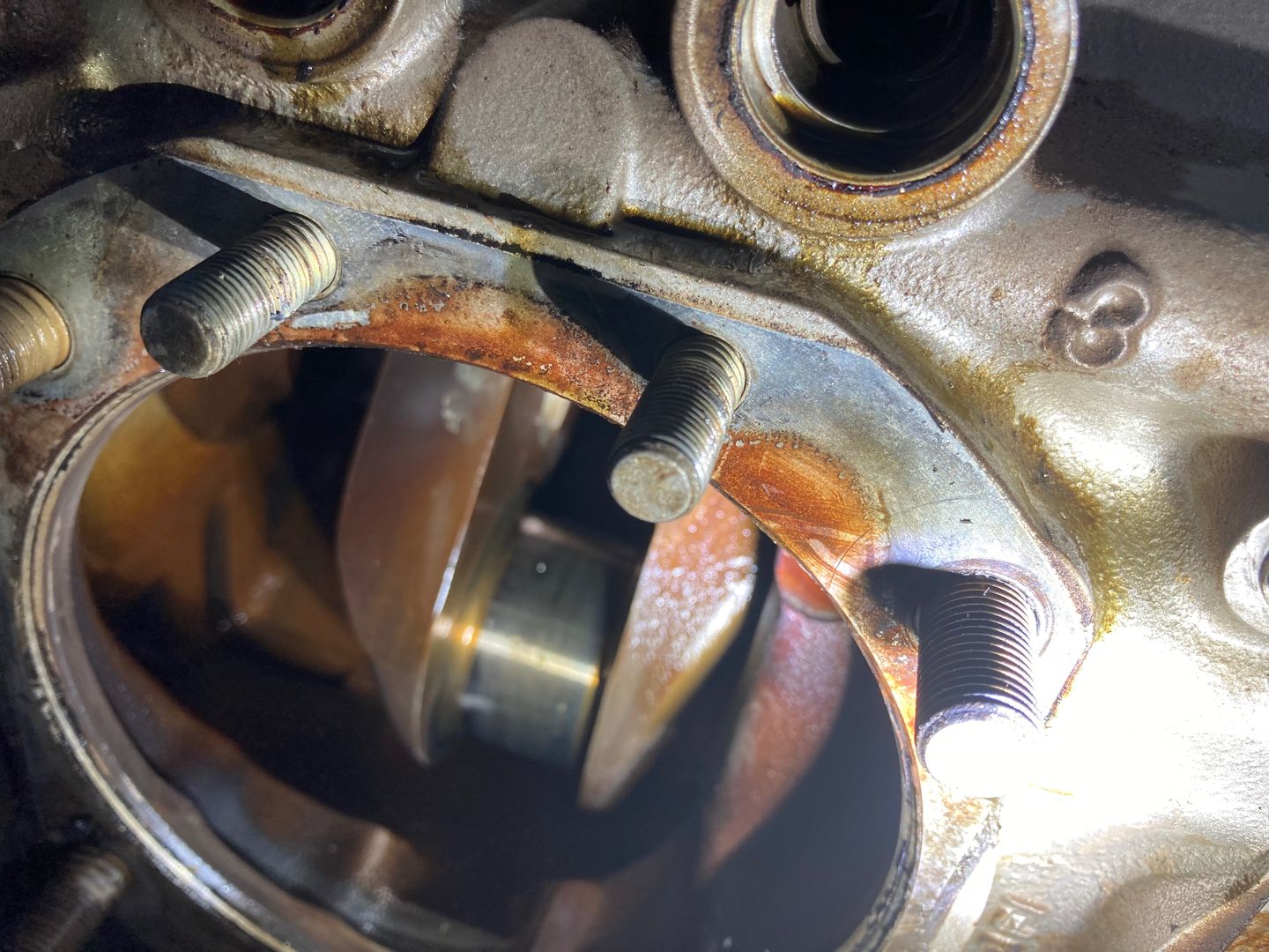 After that, I removed all the fasteners on the case perimeter and moved to the thru-studs. The idea was to remove them first, to simplify the case splitting.