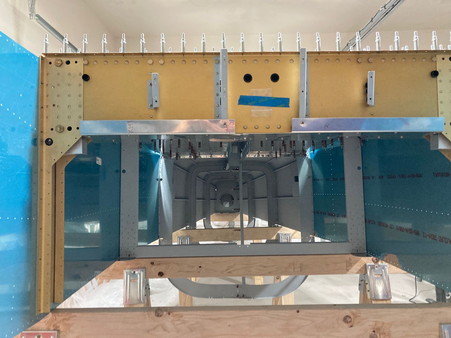 Then I connected the aft fuselage and the center section and clecoed the side skins on.