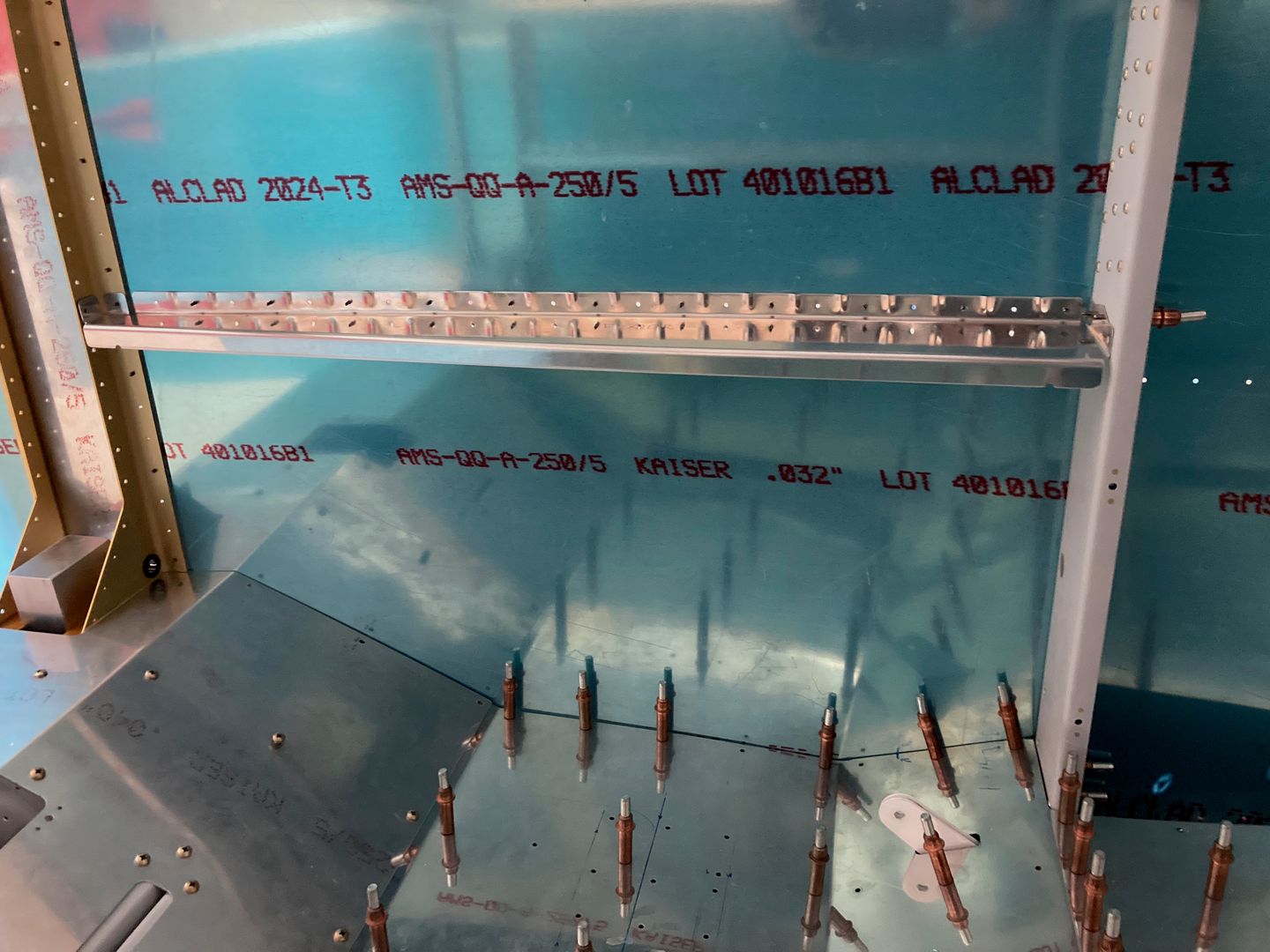 Then I fluted and clecoed the armrests. I did not drill them as I want to drill them together with the F-704K part, and it was too late to deburr them. Or maybe I'll just leave these two holes until much later.