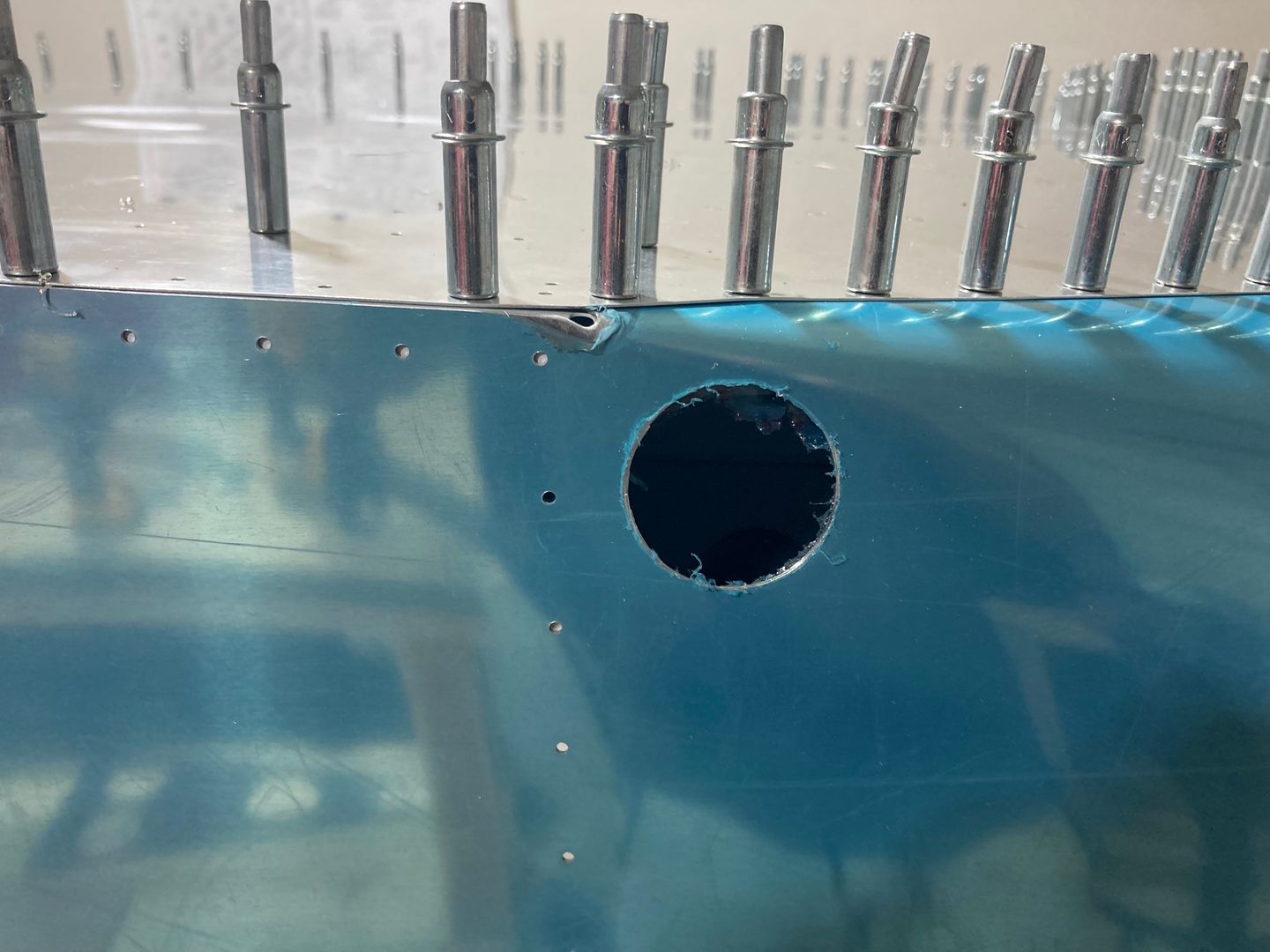 After drilling the hole, I spend quite some time trimming the F-623 corner rib and the hole in the skin to make the step to fit better.