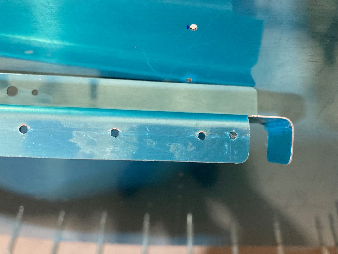 The layout is still not ideal, the bottom rivet (the top rivet on the photo) is kind of close both to the edge of the F-724 and to the next rivet. Note that all the holes are still #41 holes. I think it's okay, the edge distance is still more than 1.5D. However, on the left step, I will move the rivet just a little bit to improve the edge distance.