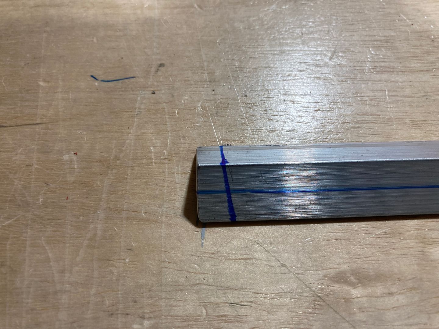 The F-713 auxiliary longeron needs to be shortened so it fits between the firewall and the F-704 bulkhead. Marking the longeron.