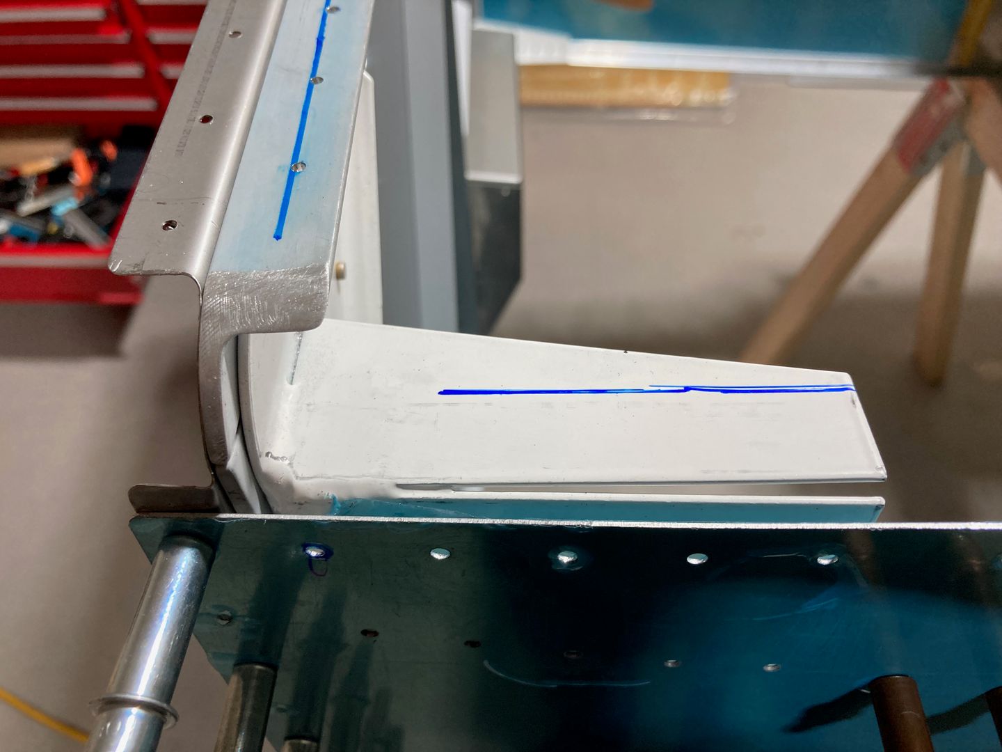 Based on the experience of other builders, I knew that if I drill the holes in the center of the longeron, I will have edge distance issues. So I placed the longeron where it should be and traced its edge to get an idea of how much real estate I have.