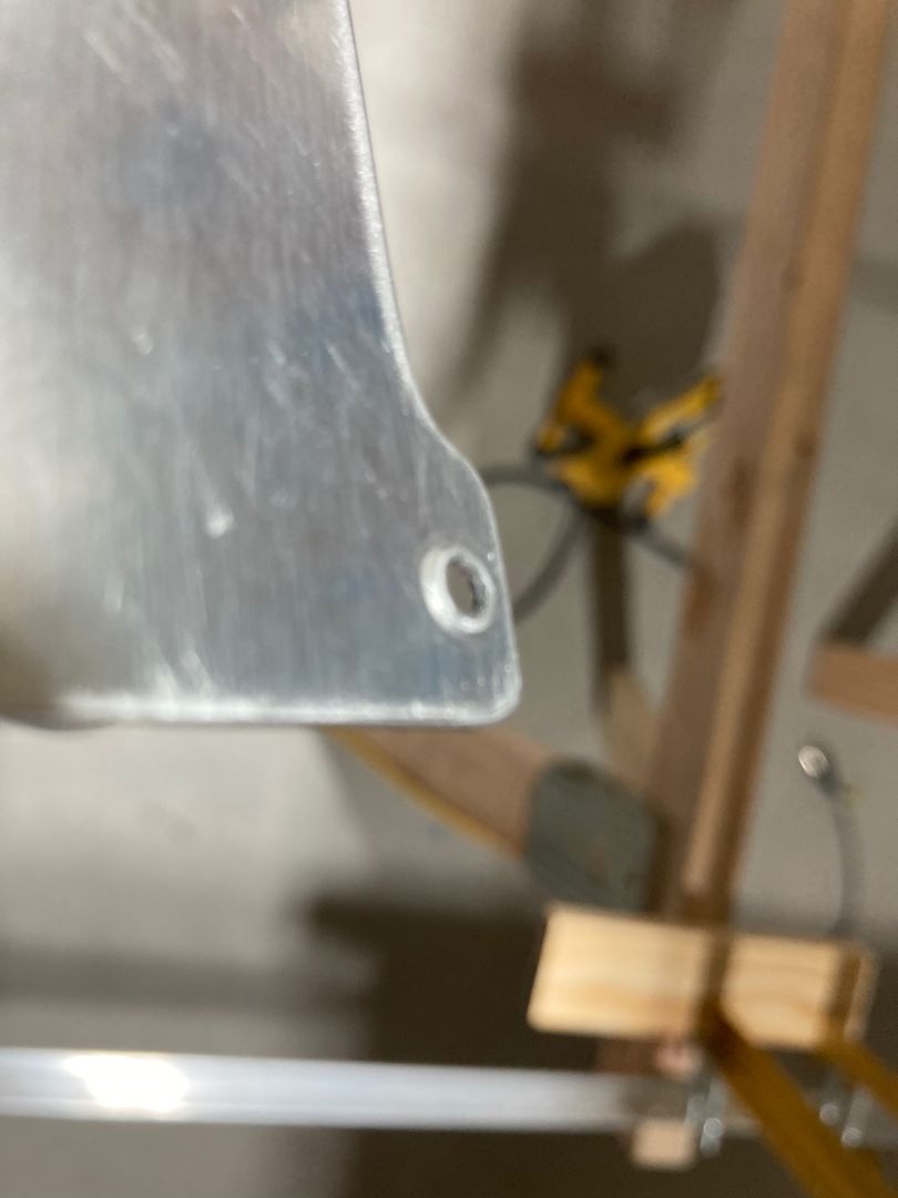 And then I realized, that it's not the F-704 that needs to be countersinked, but rather the F-7101 web! The countersink is not too deep, so I was considering upsizing the hole half-size for the NAS1242AD4 rivet. However, the issue is that the edge distance on the F-7101 is already too small, and I will need to countersink it, too!