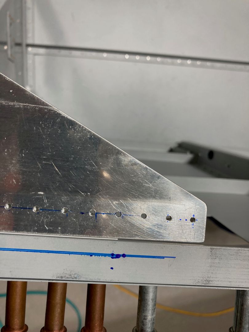 However, in the end, I found that the first one of the last four holes was exactly at the edge of the engine mount (see the left blue dot).