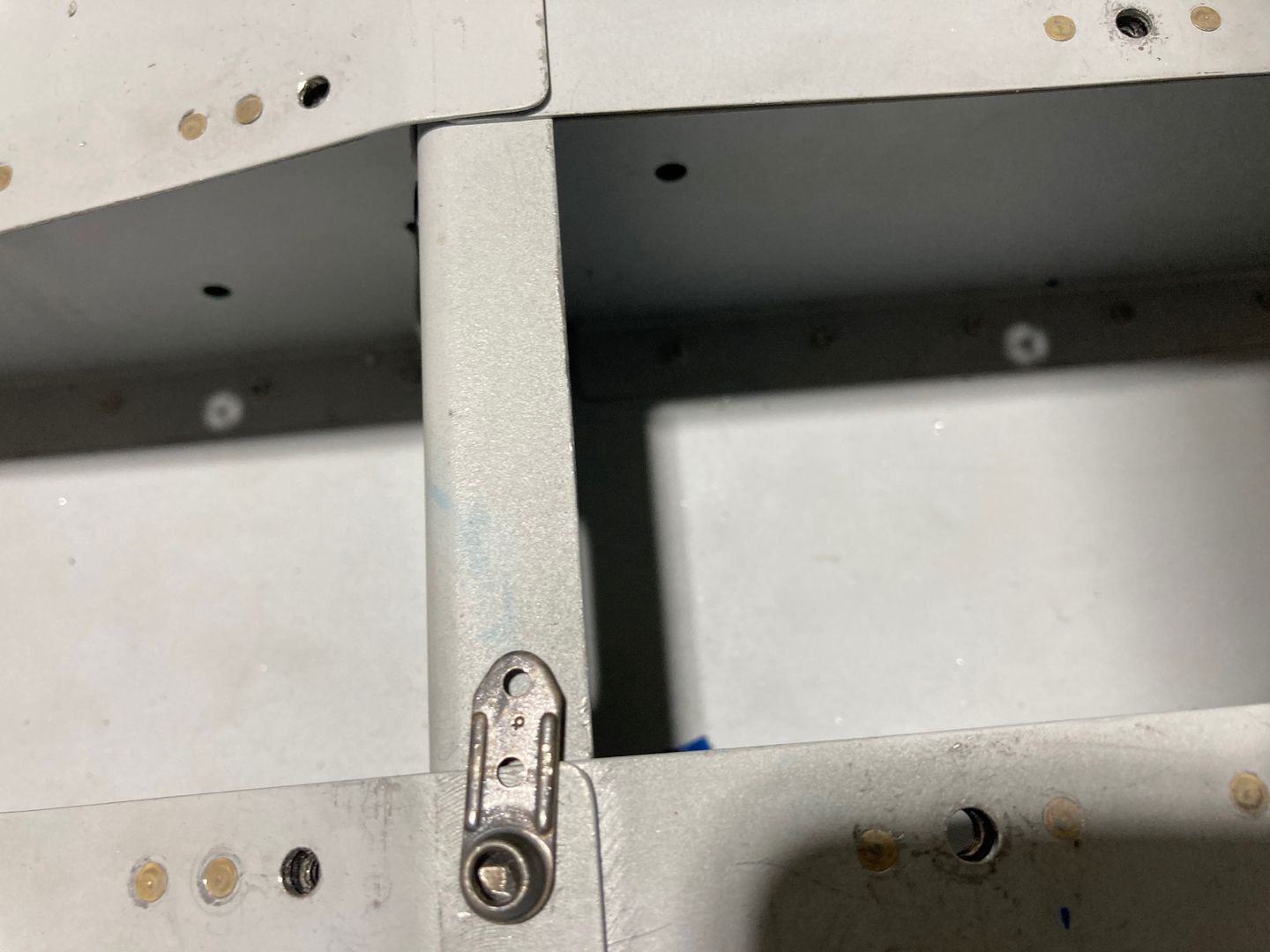 Then I drilled the holes in the bracket that attaches the flaps actuator channel to the cross member of F-705.