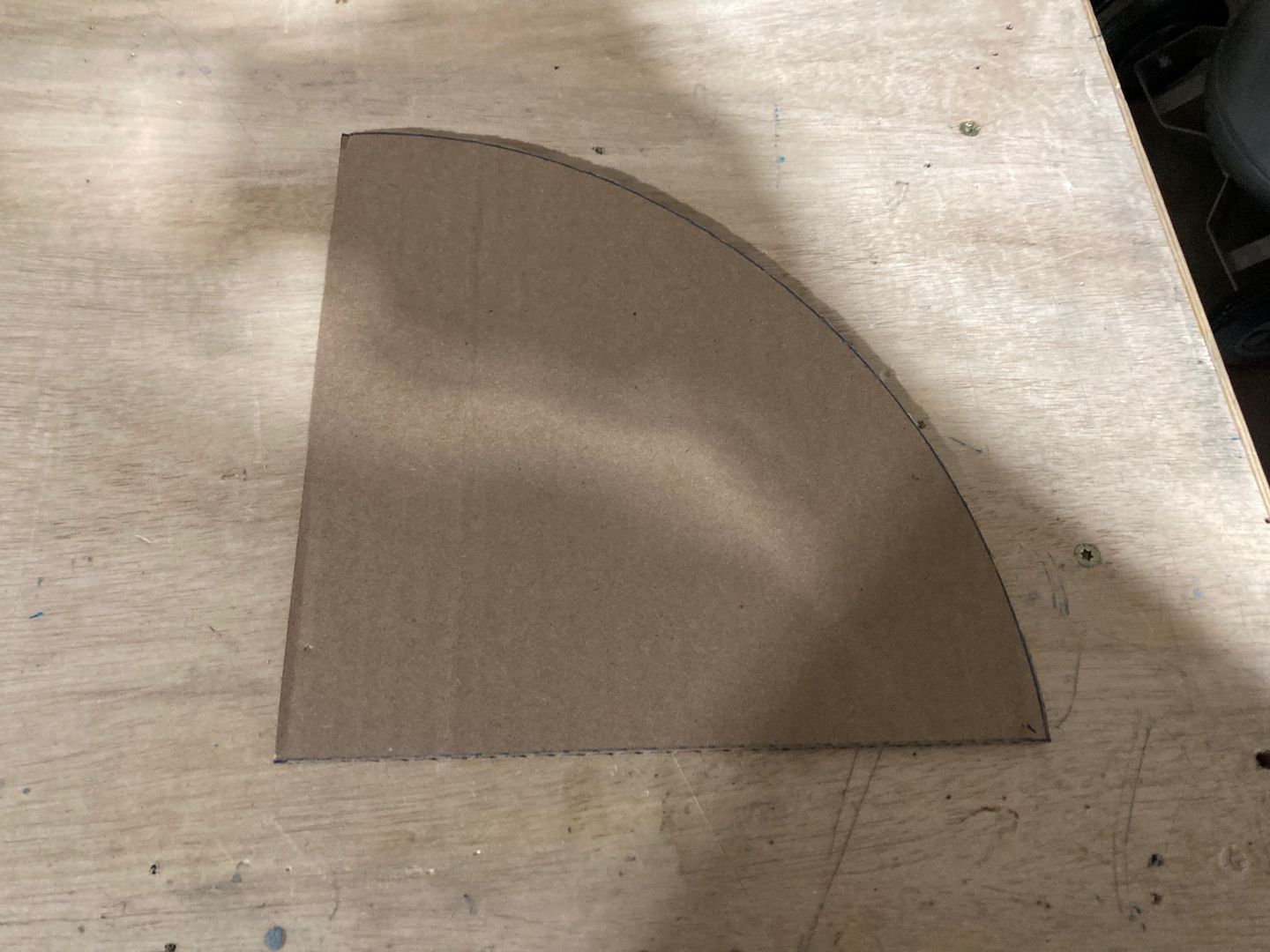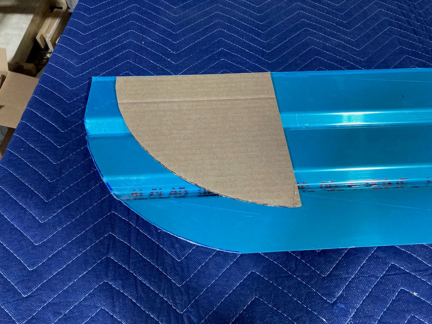 The top F-652 bulkhead panel needs to be trimmed. The cut is a simple radius cut, so I made a cardboard template to transfer the radius to the part.