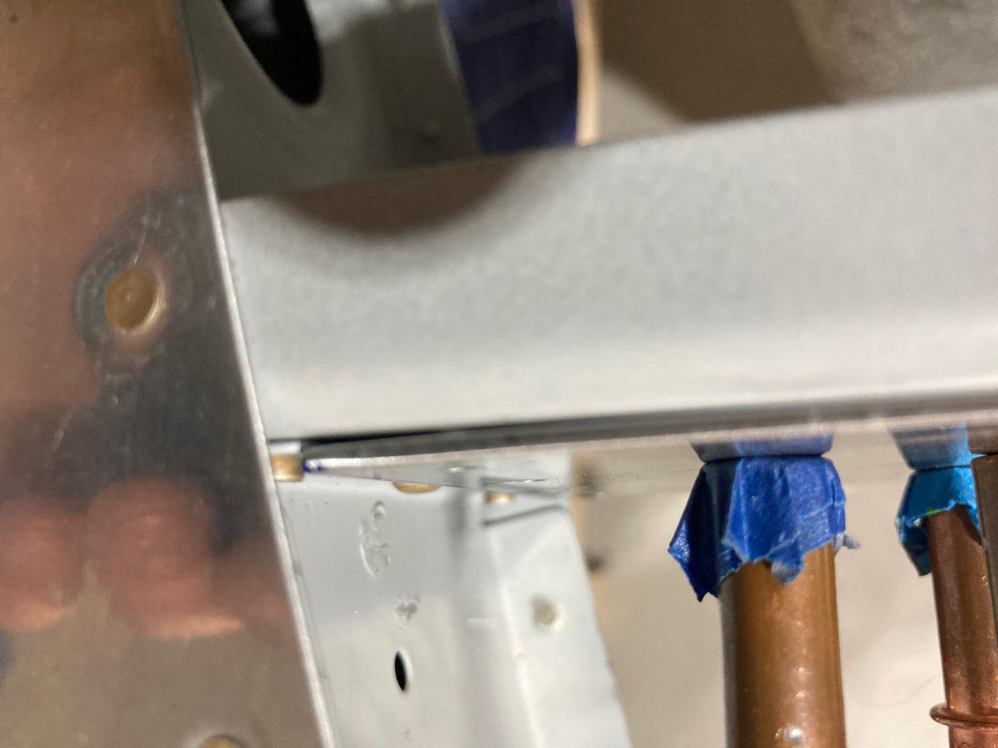 I drilled the four holes in the F-781 and removed the stabilizer to drill the rest. Then I realized that I allowed the front spar of the stabilizer to drop so much that F-781 caught on the flange of the VS-704 rib.
