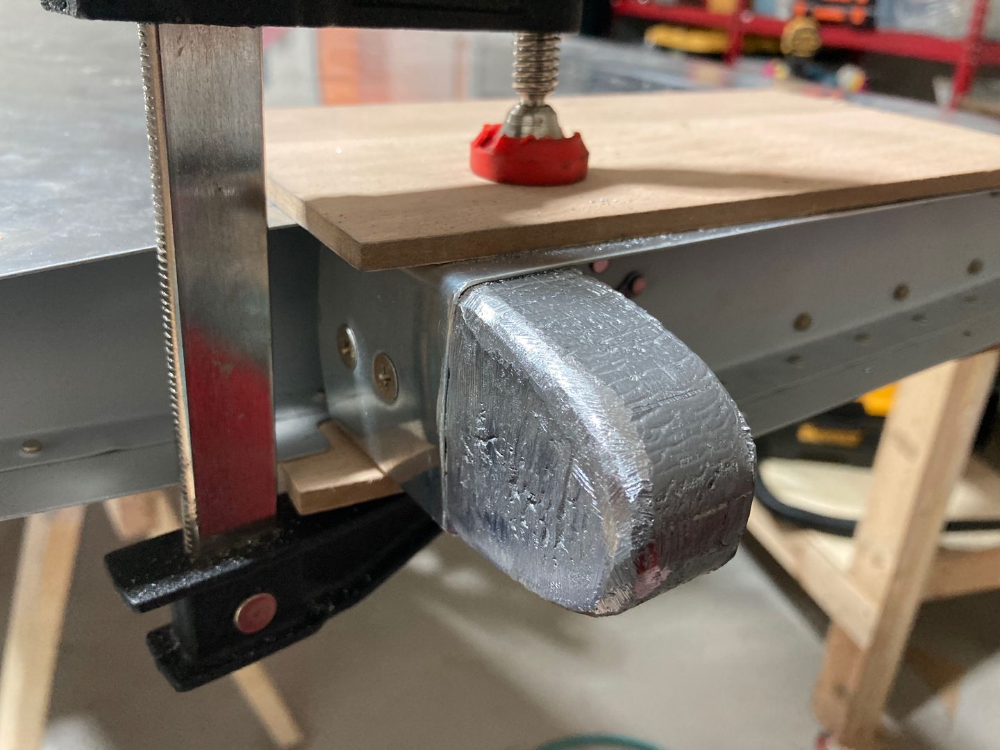 Since I wanted to fiberglass over the counterbalance weights, I rounded them with a file so I could put cloth over the edges. I probably need to round edges a bit more.