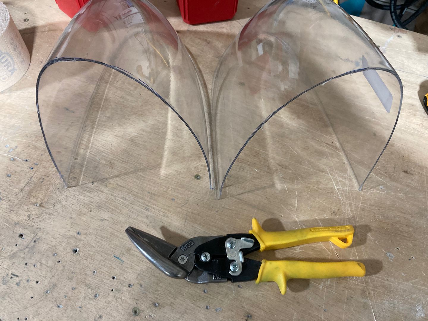 First, I cut the wingtip lens stock into two pieces. It's a very soft plastic, so I used tin snips to cut it in half. Worked very well.