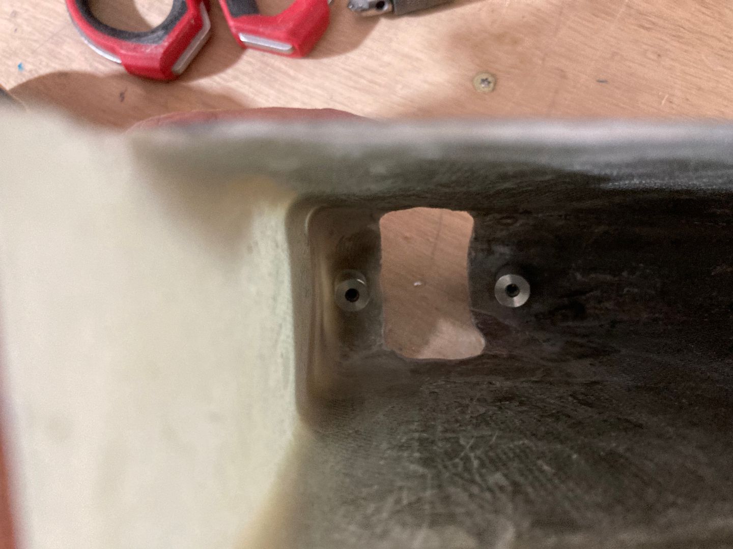 Also, I added some epoxy flox mix on the inside around the hole to reinforce it as well. And I put the mounting bracket into that flox mix, then I put two screws to hold the bracket in place.
