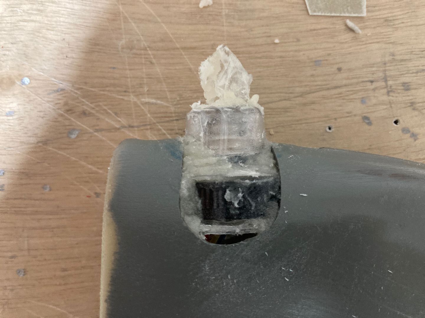 The important part of this step is to epoxy the inserts and create a seat for the beacon and for the clamping plate as well. The sides will be filled with epoxy later.