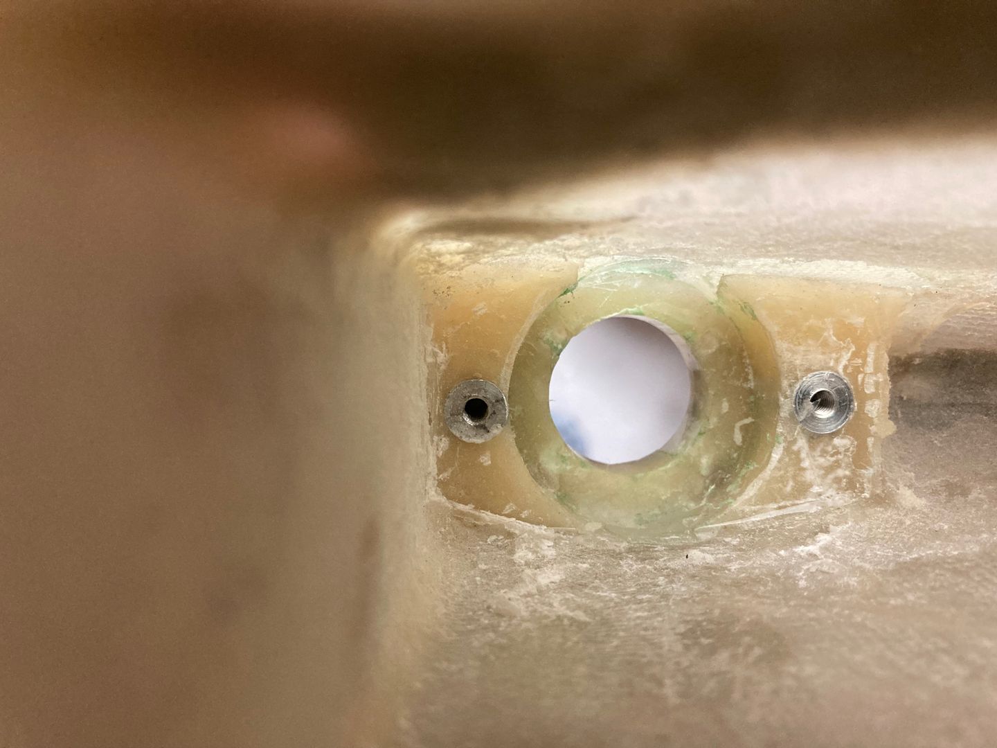 This is what it looks like from the inside. It's ugly, but the beacon sits firmly in that area and is held well by the plate and two screws.